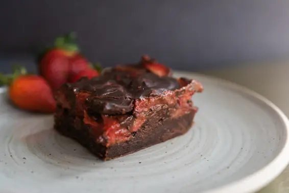 Few desserts can match the romance of chocolate-covered strawberries... except for if you take that classic combination and make it into a baked good! Chocolate-Covered Strawberry Brownies feature fudgy, chocolatey brownies and a layer of sweet, summery, and scarlet strawberries, all of which are covered by a layer of melted chocolate. It's a dessert truly worthy of Valentine's Day or a treat you can make just to impress someone you care about! Chocolate-Covered Strawberry Brownies capture that feeling of falling in love... how appropriate since you'll be falling in love with this treat in an instant!