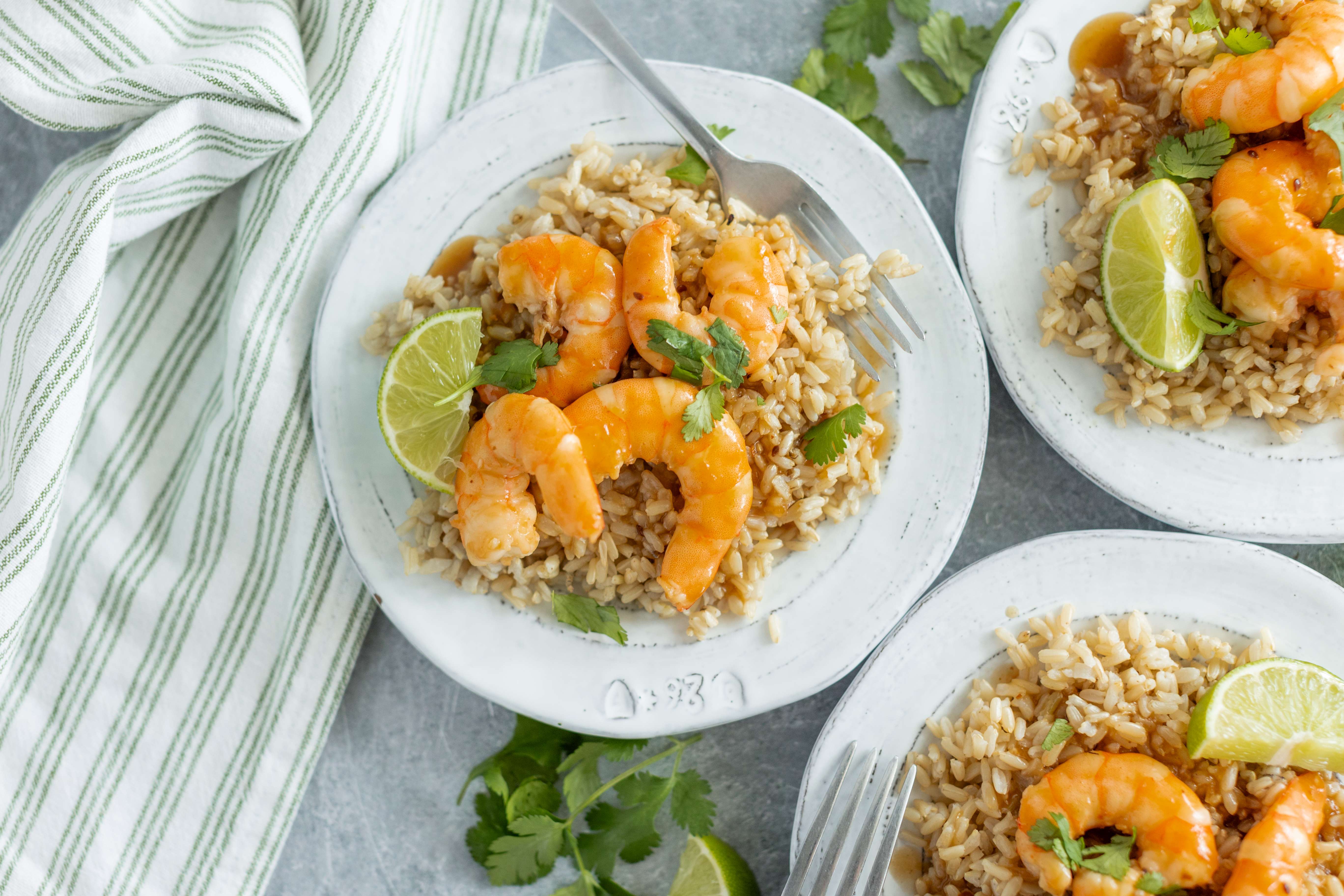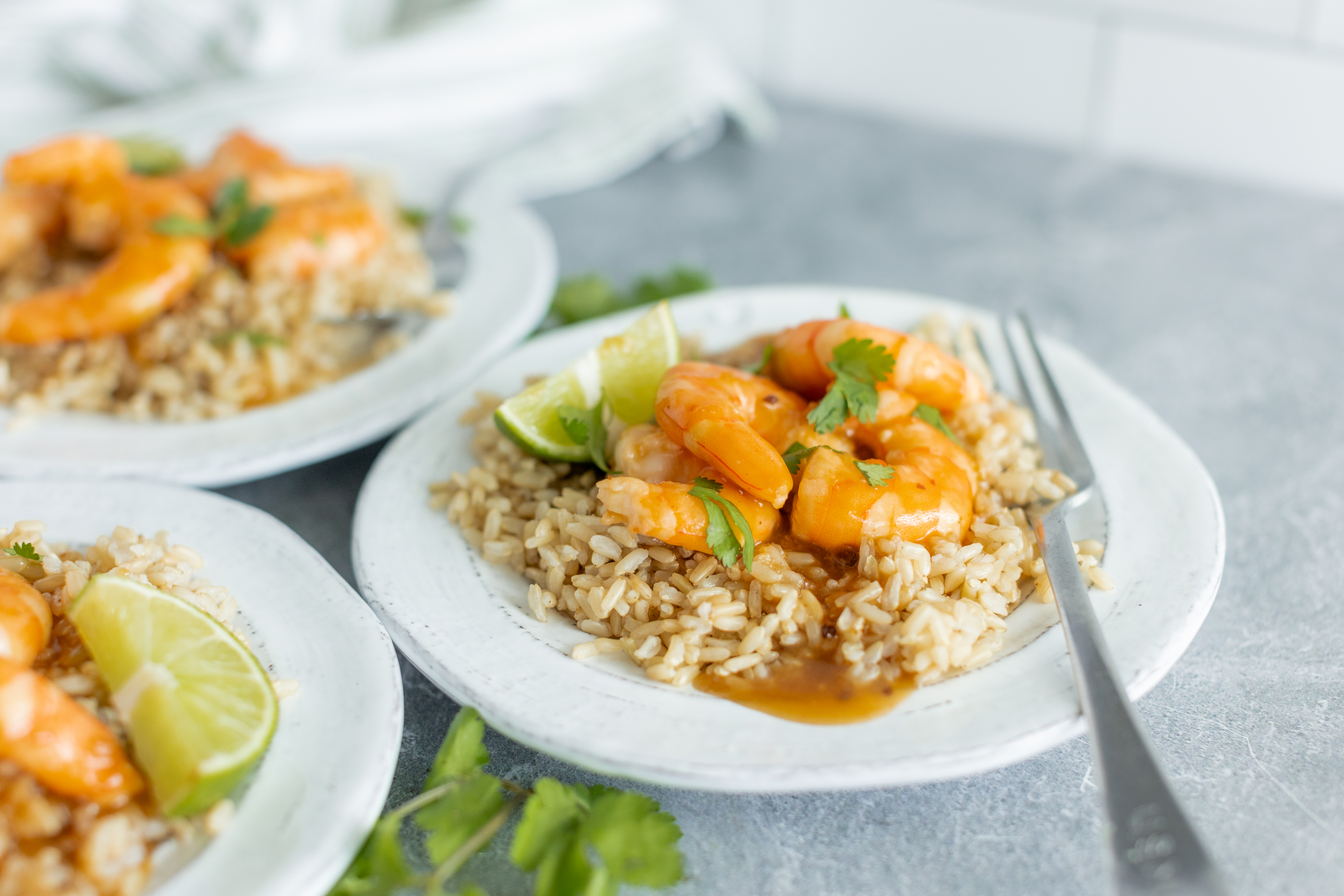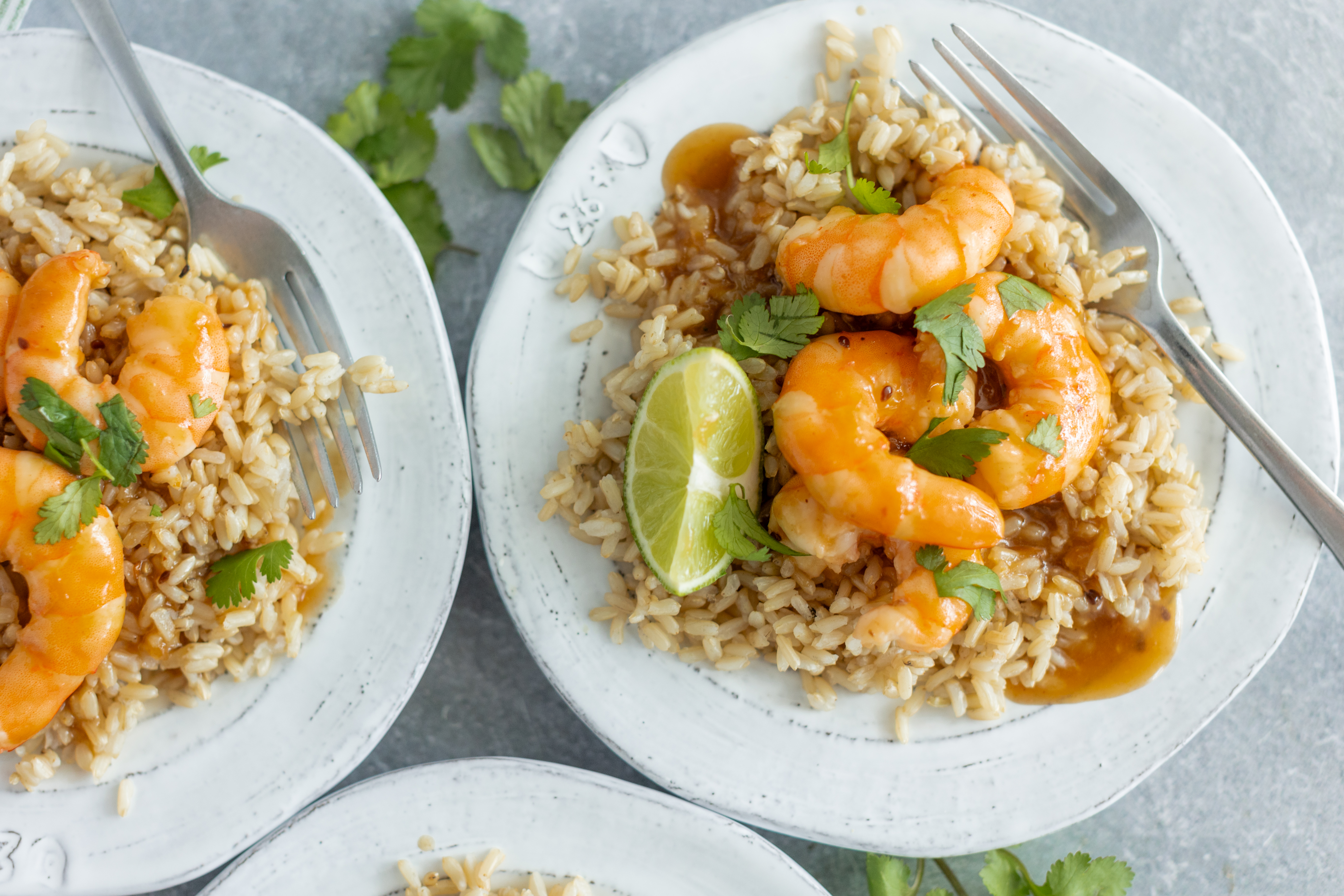 Step 5 -Plate the shrimp over the brown rice and top with the warm sauce.