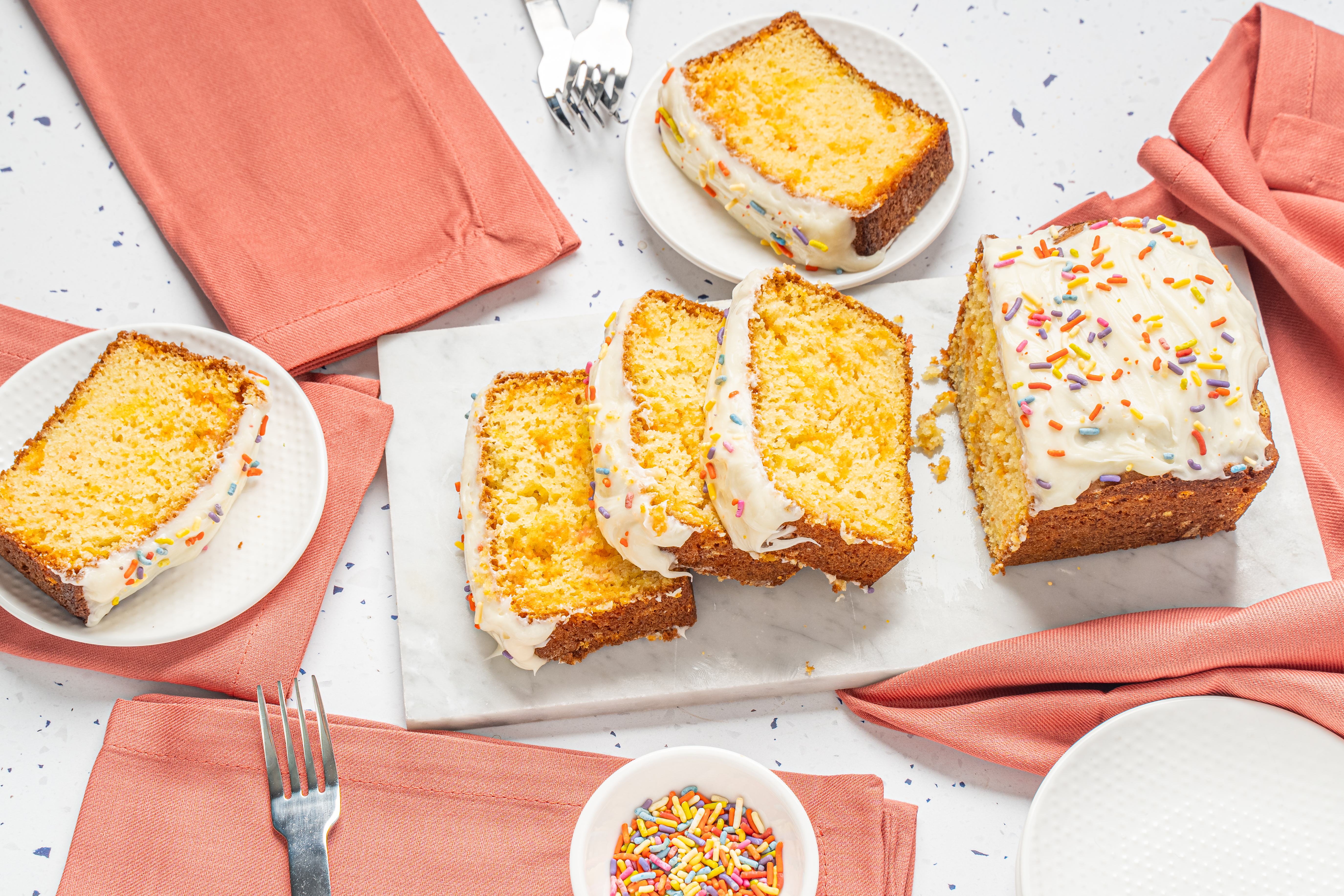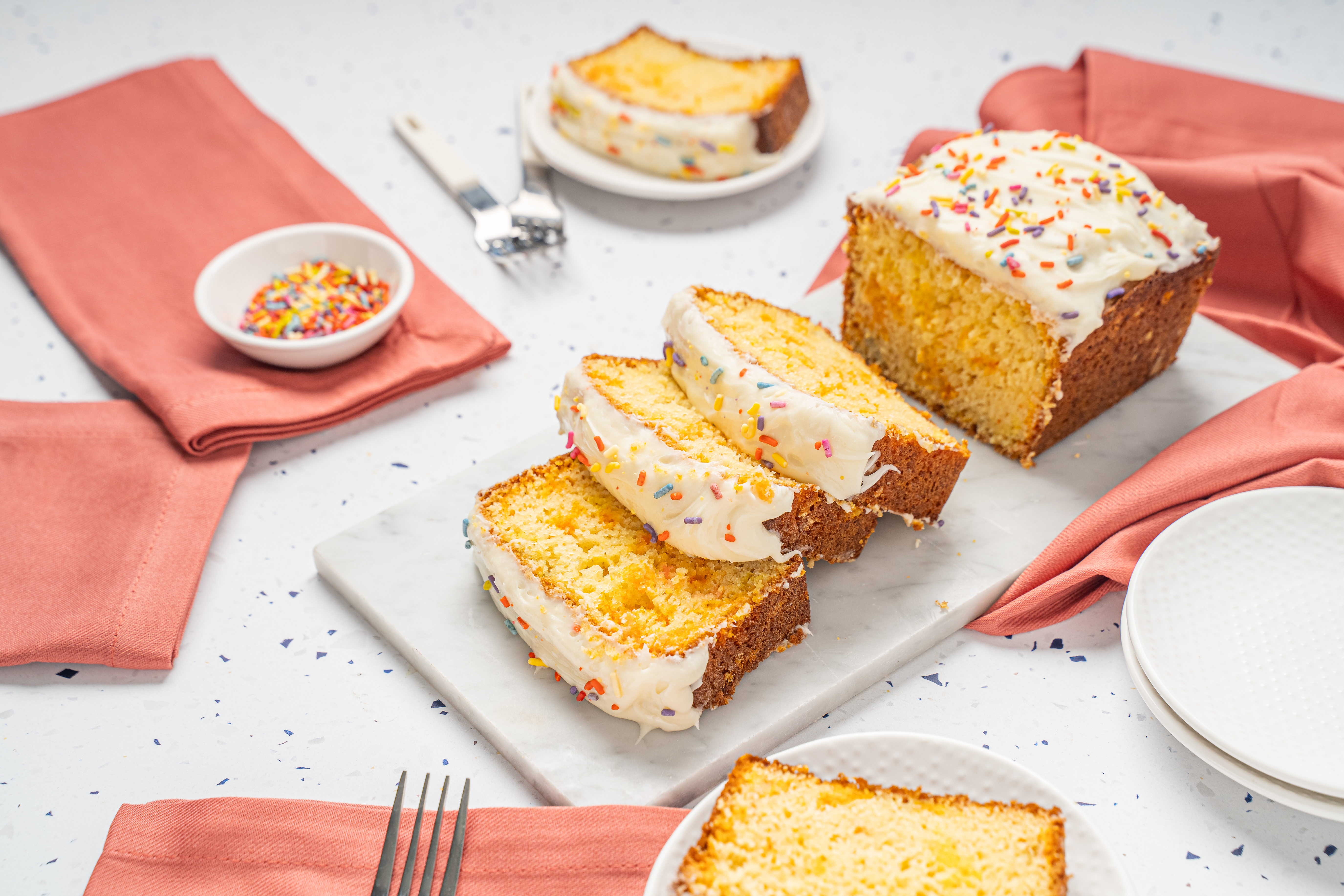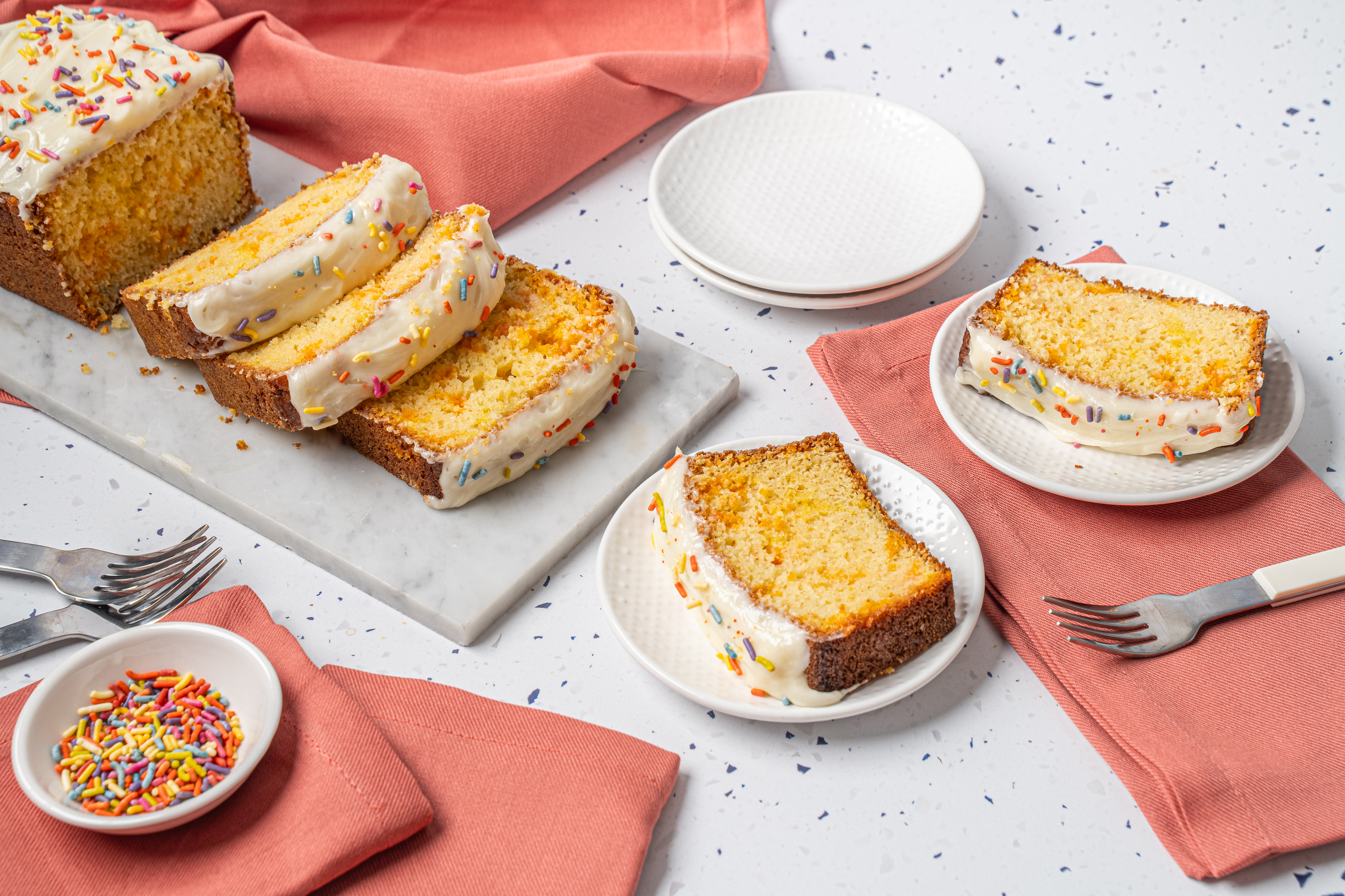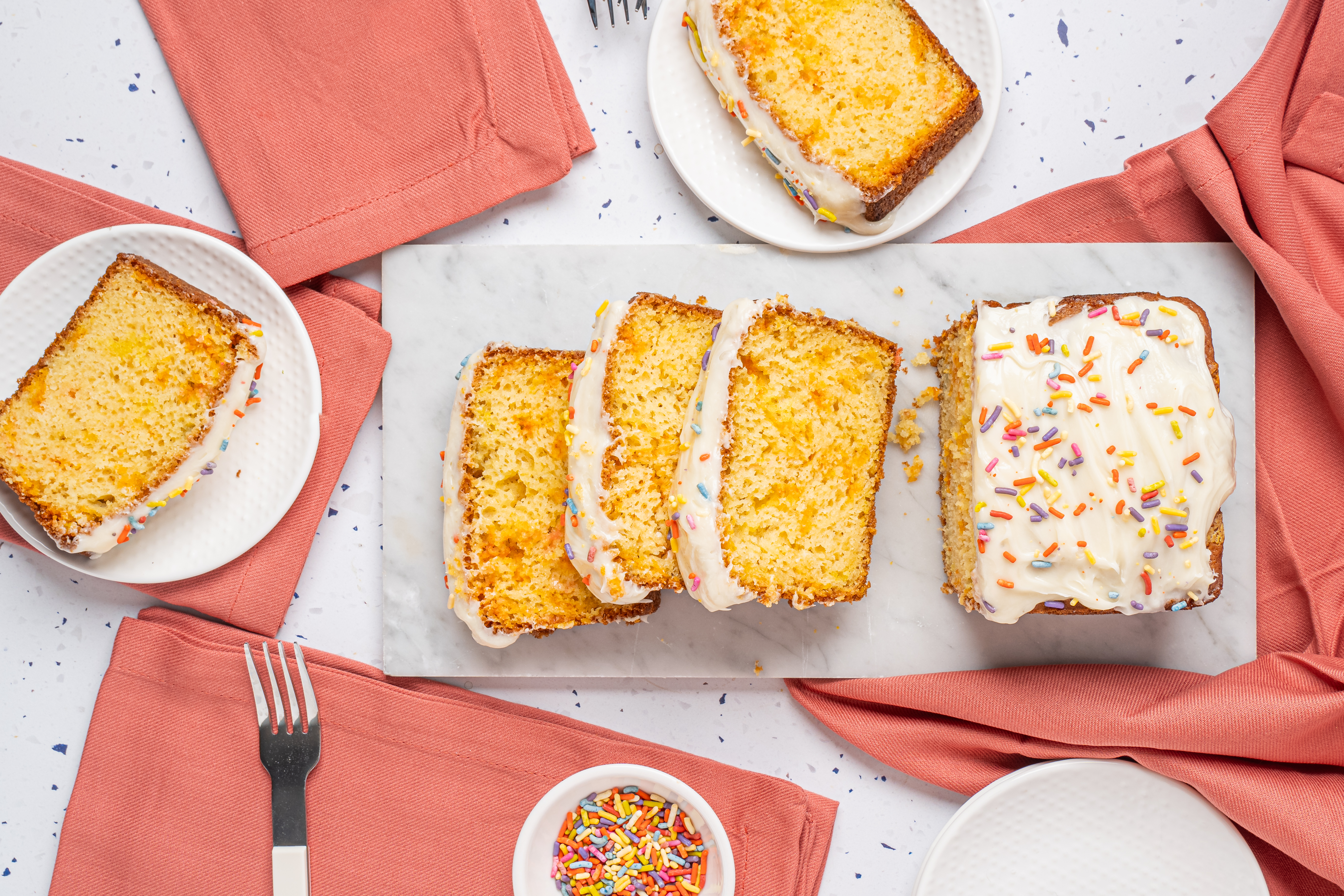 Okay so the Birthday Loaf is actually kind of genius. It's still a tender, fluffy, sweet birthday cake with loads of sprinkles mixed in and creamy frosting on top, but it's served in loaf-form. That means it slices beautifully (so much easier for sharing) and in a way that makes it very easy to use the cake slices like sandwich slices. Imagine using Birthday Loaf to make an ice cream sandwich! Trust us, this is a charming and tasty variation of the typical birthday cake!