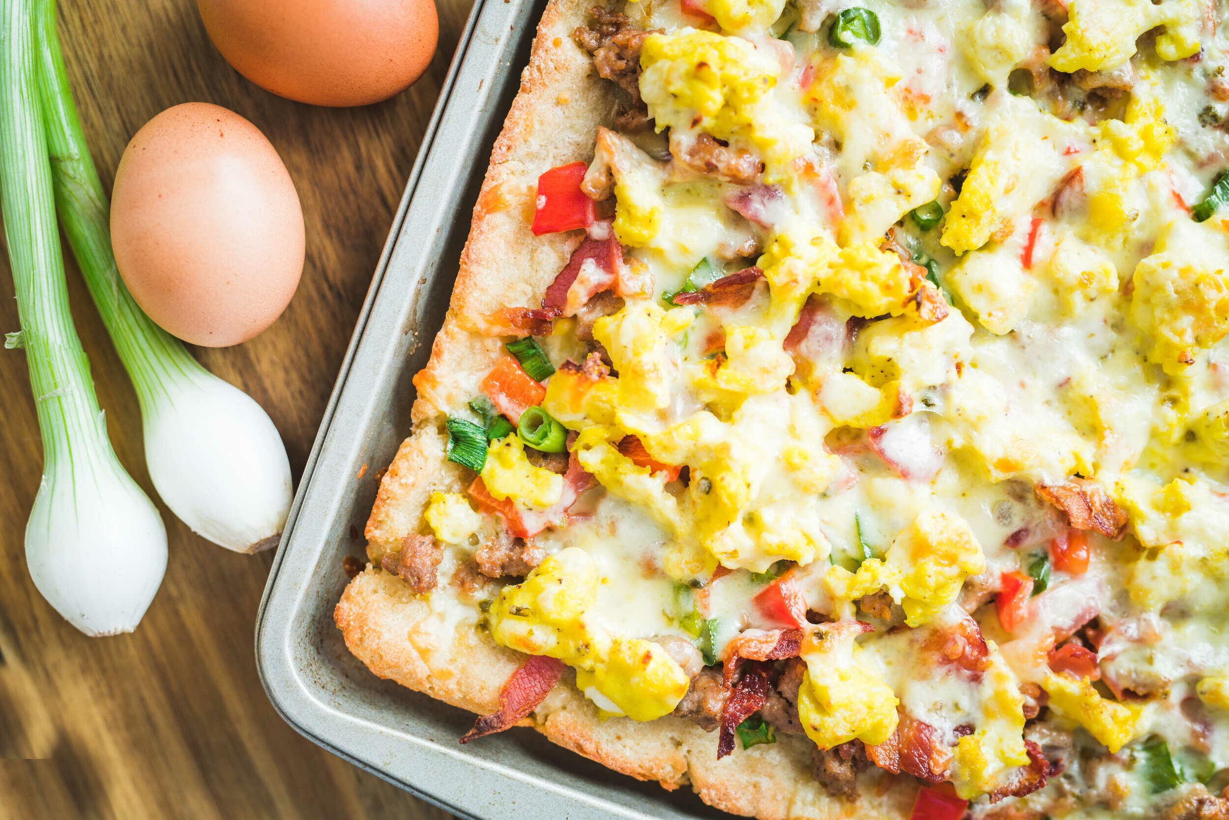 Cold pizza you threw in the fridge last night is perfectly fine as a breakfast, but you can do better. Breakfast Pizza has everything you love about pizza: crispy crust, herby seasoning, and cheesy top — but with more breakfast flavor favorites like sharp cheddar, crunchy bacon, and satisfying sausage. Breakfast Pizza is a delightful way to start the day that takes less than 45 minutes to make. You'll be craving another piece of this pizza at every meal!