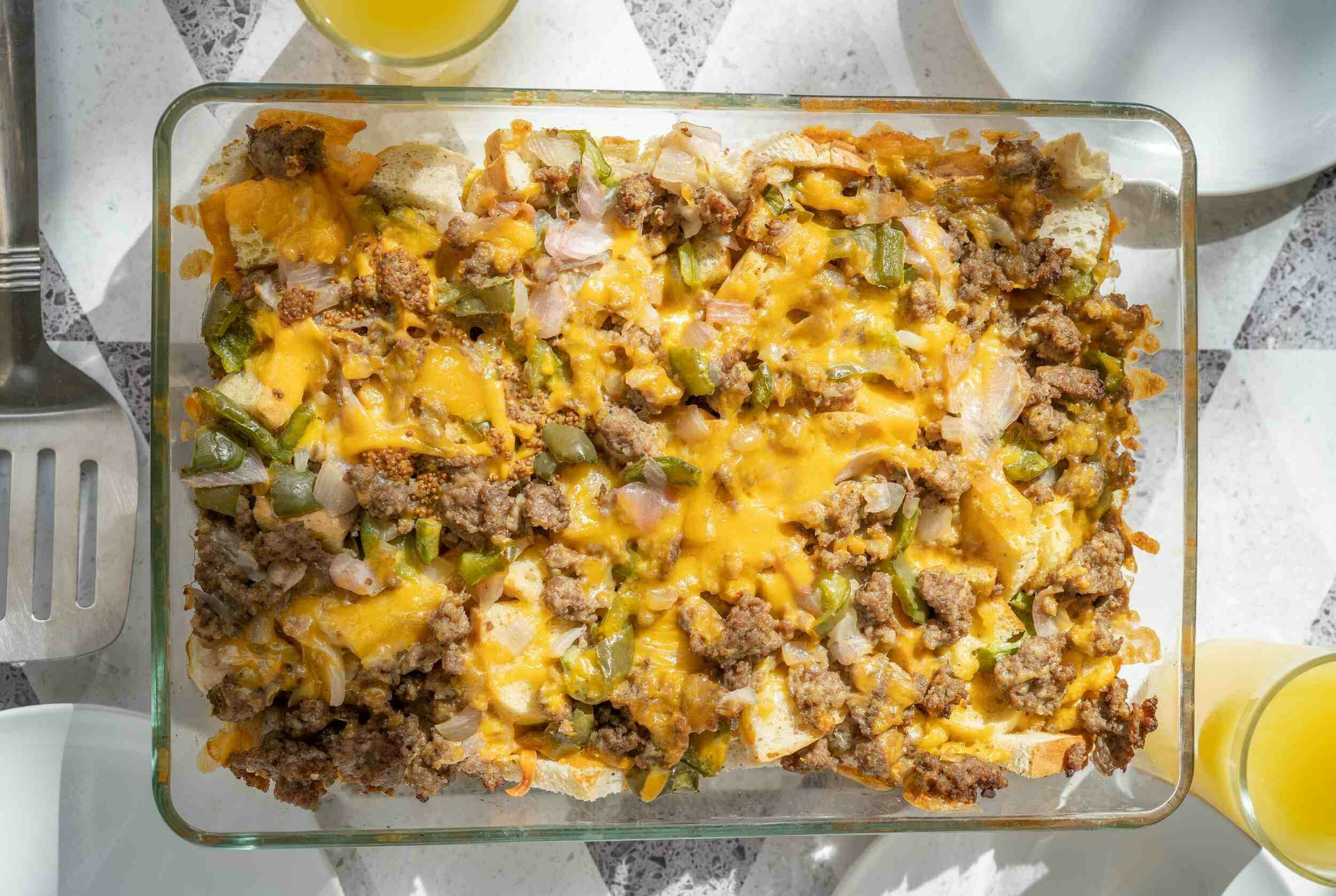 There is never a limit to how many breakfast casseroles you can have on queue, so just go ahead and add Breakfast Strata to the weekly rotation. A layer of cheesy bakery bread makes up the foundation of this simple yet delectable dish. Spicy pork sausage, sweet green peppers, salty cheddar cheese, sharp ground mustard, and of course, the good 'ole faithful scrambled eggs, make up the rest! Whip it up the night before and enjoy Breakfast Strata the next morning in 30 minutes! See? It's a casserole worth repeating!