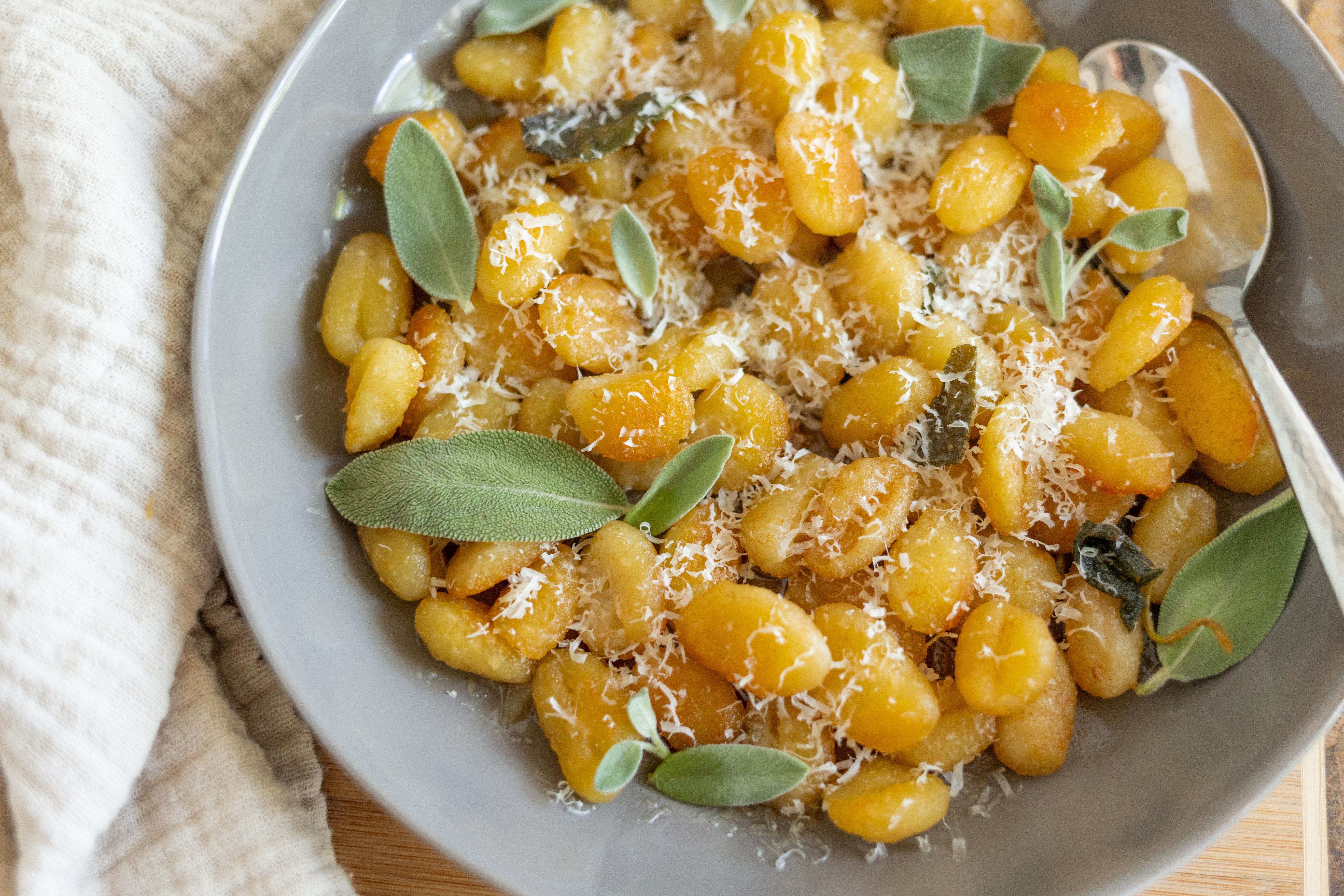Grilled steaks, chicken breasts, pork chops... the list is long for what this side dish can do for you and your leading meats! Brown Butter Gnocchi is the perfect supporting actor for any of your dinner theatrics. Voted "Best Flavor Added to a Pasta" (by us), sage steals the show when it's immersed in browned butter and showered over the highly acclaimed gnocchi. The (fictional) "Golden Spatula" award goes to Brown Butter Gnocchi for the elegantly delicious work it's done on the dinner stage to support all of those show-stealing meats. We would like to thank our very own (imaginary) cooking academy for this new pasta talent. It's definitely the star of the show!