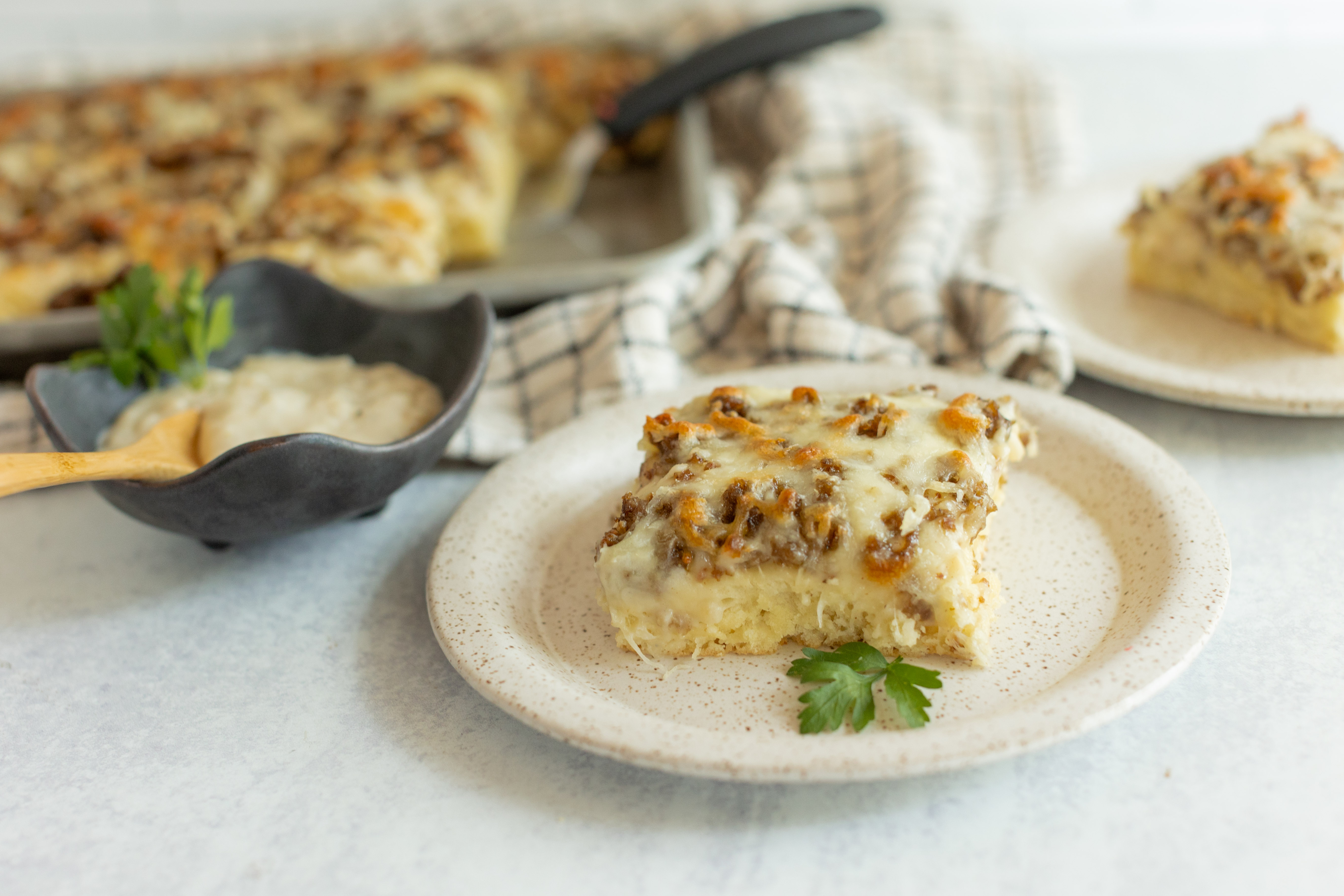 We know how it feels to have to rush out the door before you can even get a good breakfast in. But Busy-Day Breakfast Pizza is here to say "No more" to that! In just half an hour, you'll be armed and ready with a breakfast that guarantees you'll be energized for the day! Golden-brown pizza crust holds up a savory gravy topped with succulent pork sausage and melted mozzarella cheese. And they say pizza isn't for breakfast! Busy-Day Breakfast Pizza can turn a stressful day into an amazing day in just a slice or two!