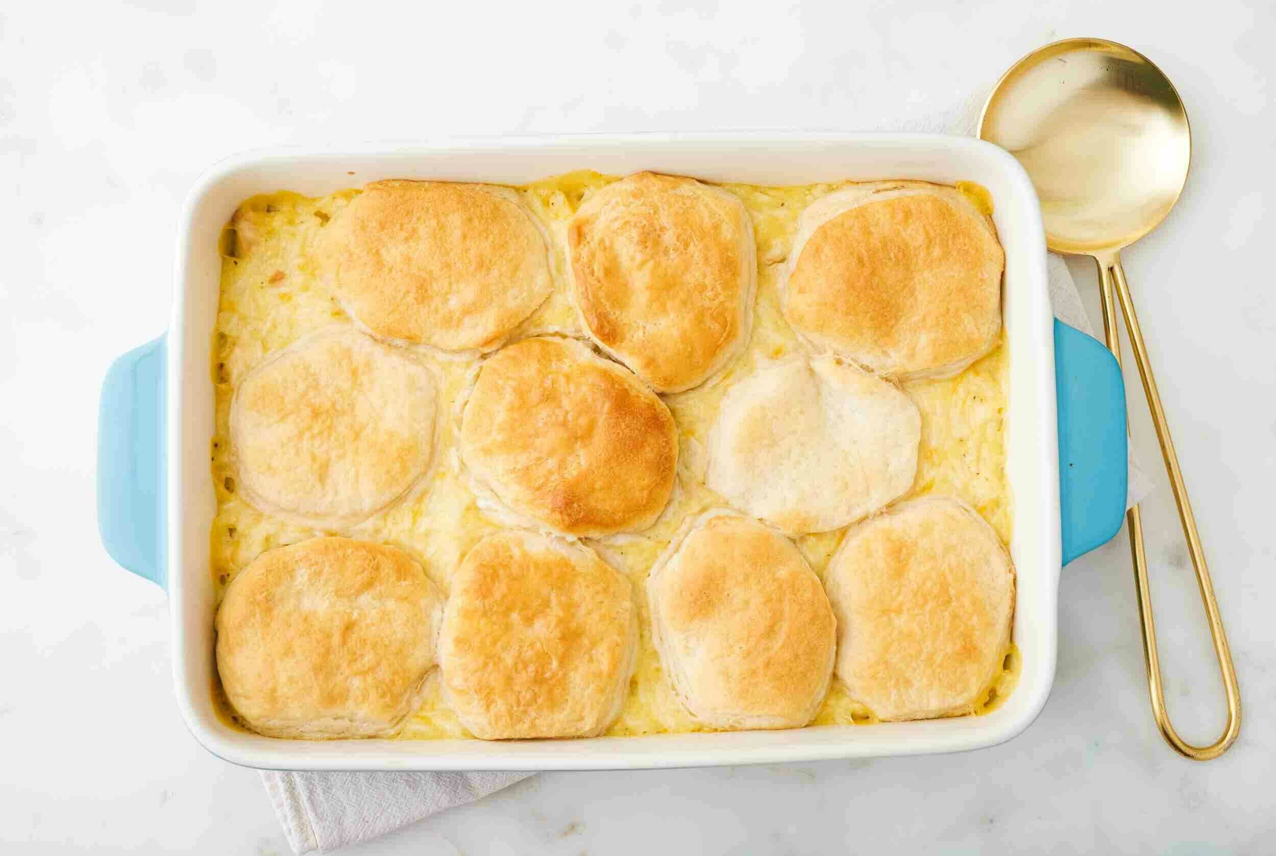 This creamy casserole is the ultimate comfort food and perfect for those days where you need dinner to come together easily. The Chicken Biscuit Casserole is almost like a chicken pot pie—but in casserole form. This dish boasts a rich and savory sauce saturating juicy chicken and fluffy rice. The crust is flaky, buttery, and crispy—so in other words, a delight! Chicken Biscuit Casserole can be made in under an hour, so you can bring comfort to the table whenever you need it!