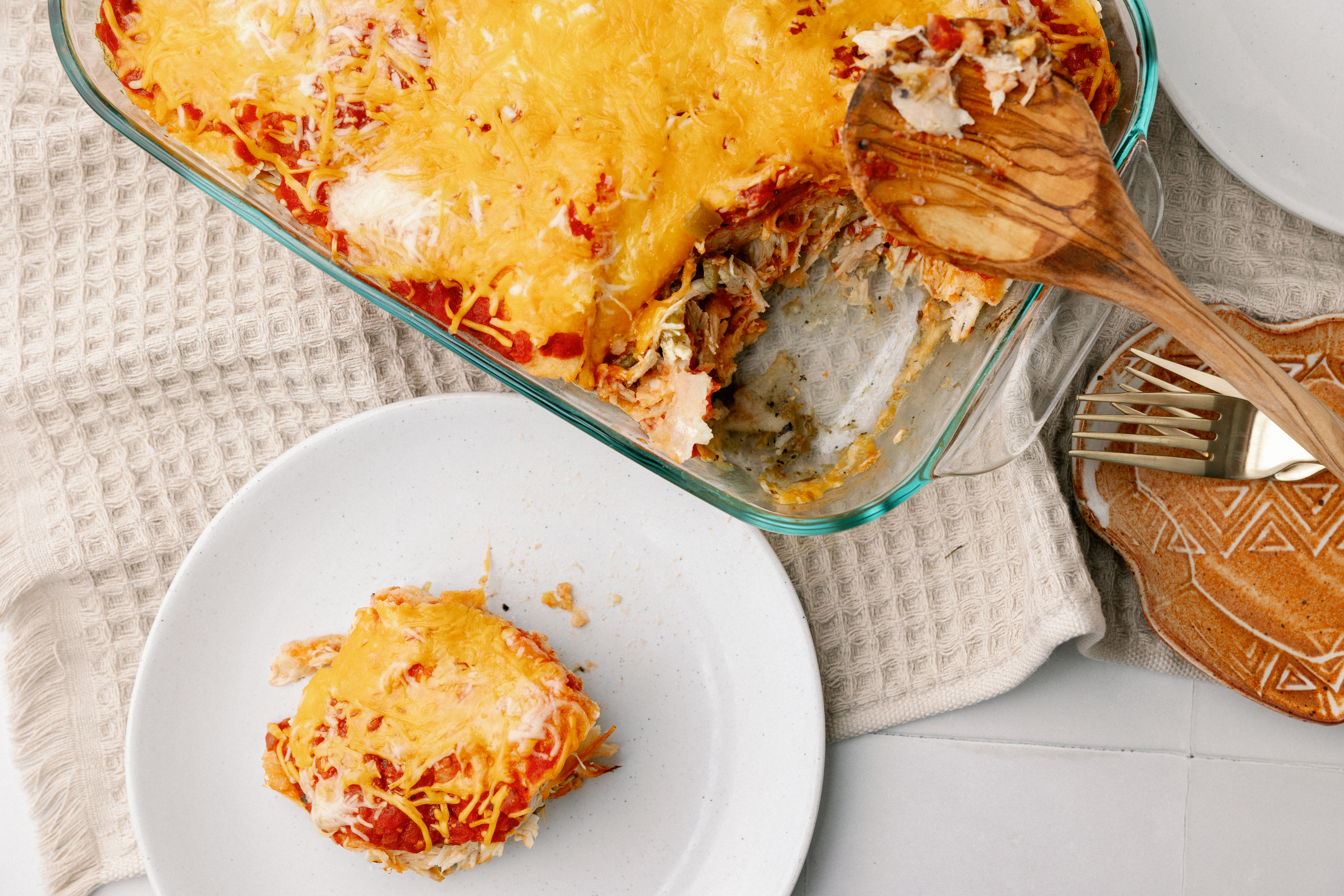 No need to panic about what to make for dinner! With the forethought of Chicken SOS Bake, the problem is solved before it can even appear! A tart, bright, and citrus-like tomatillo sauce with notes of poblano heat and garlic layers between juicy shredded chicken, tender tortillas, and vibrant salsa! Can't forget all the melty Mexican cheese either! Chicken SOS Bake takes some time to prepare, but when it all comes together, dinner will be a sumptuous affair!