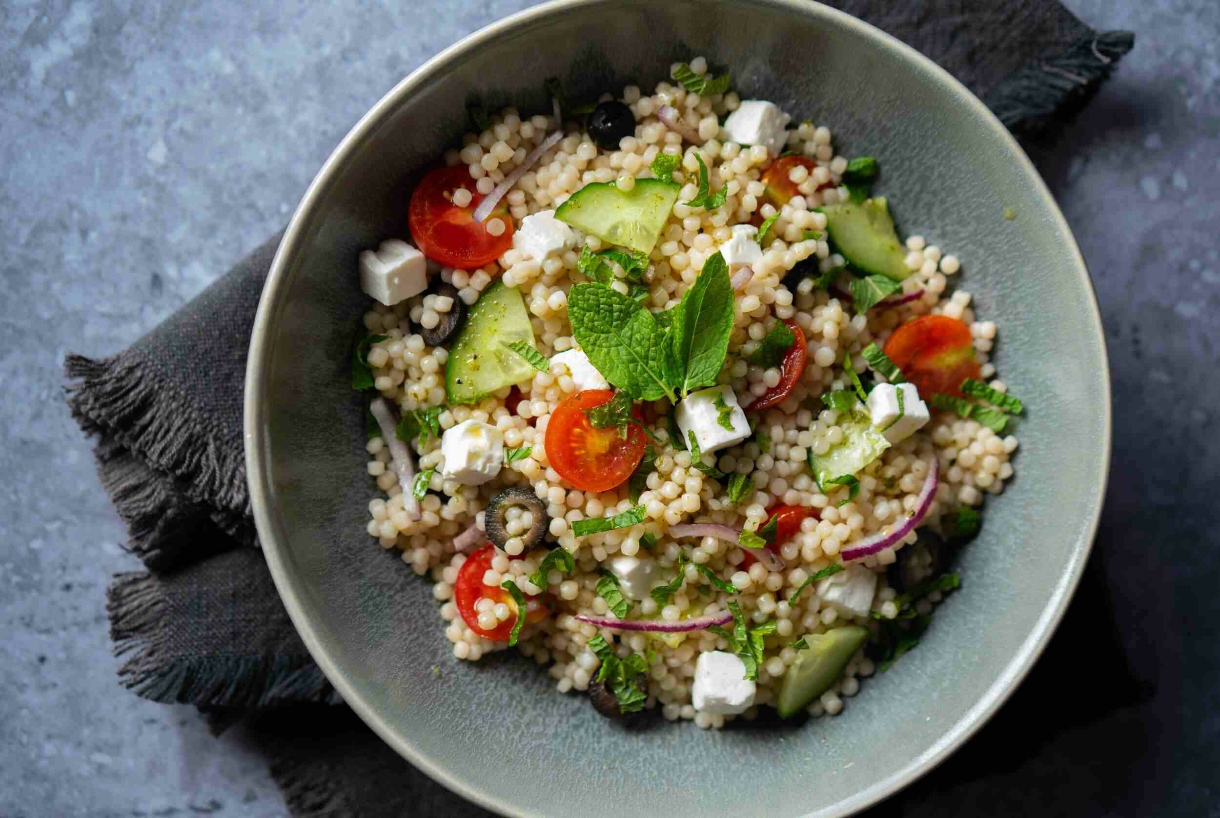 Couscous is the lightest, fluffiest, and most flavorful pasta you’ve ever tasted, which amazes everyone who tries it! Paired with a fresh garden salad with sharp feta cheese, Couscous is irresistible—especially with a bright and tangy dressing. Nestled next to steak kebabs, grilled fish, and chicken breasts, this side dish really makes a statement: “yum!”