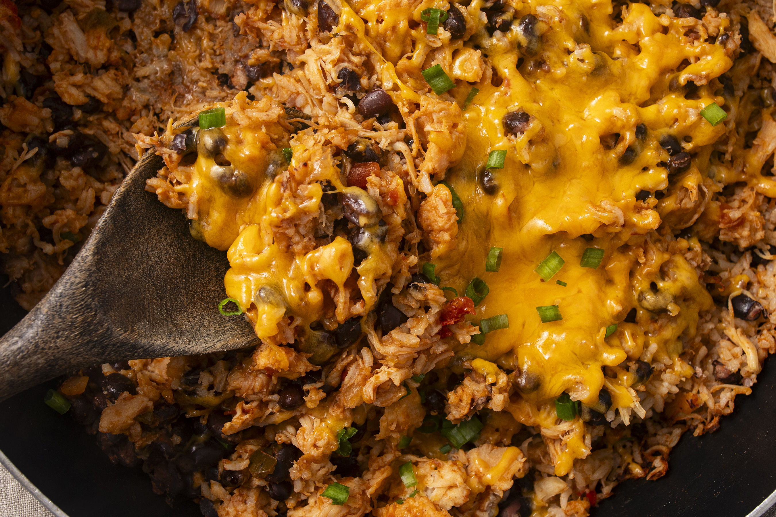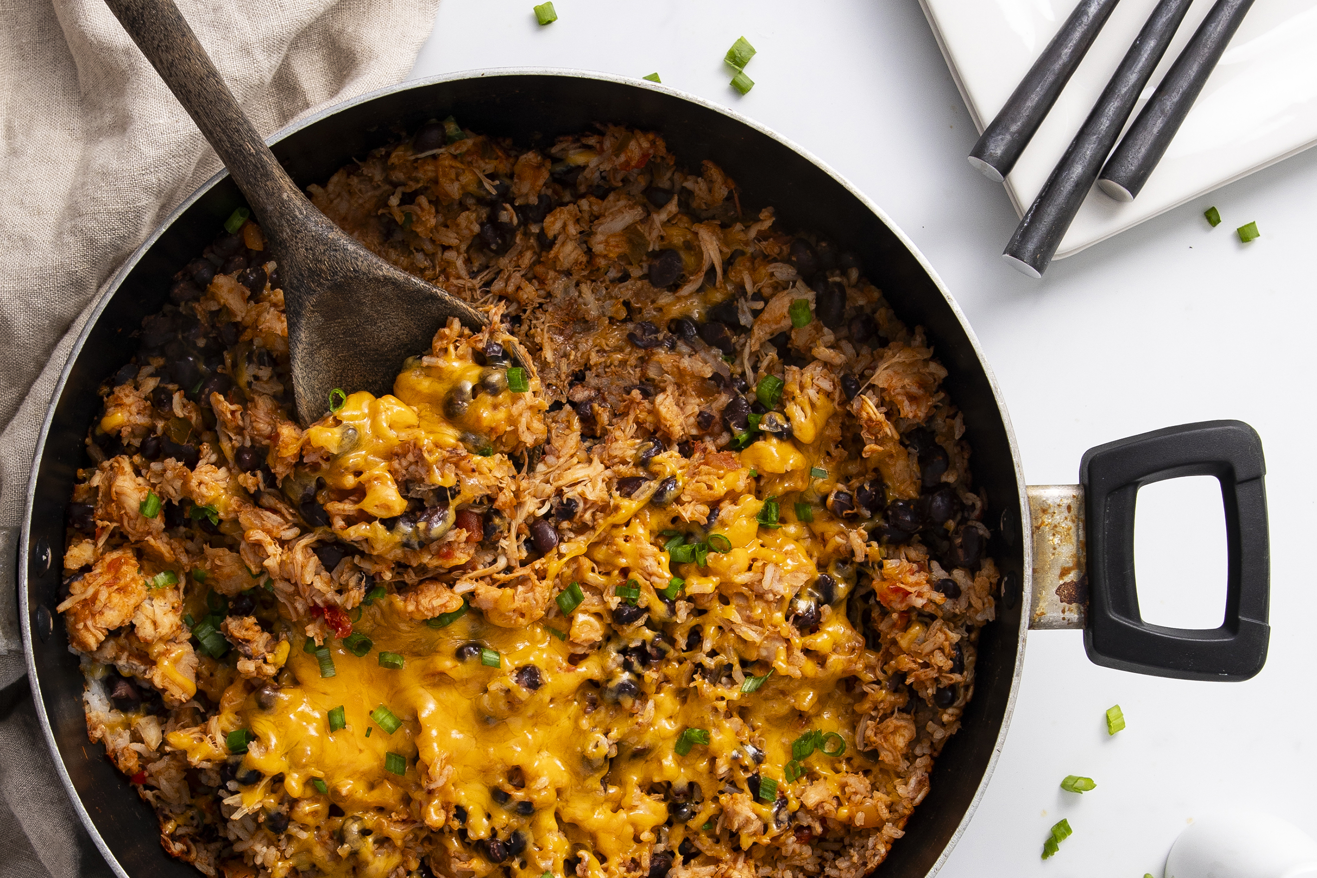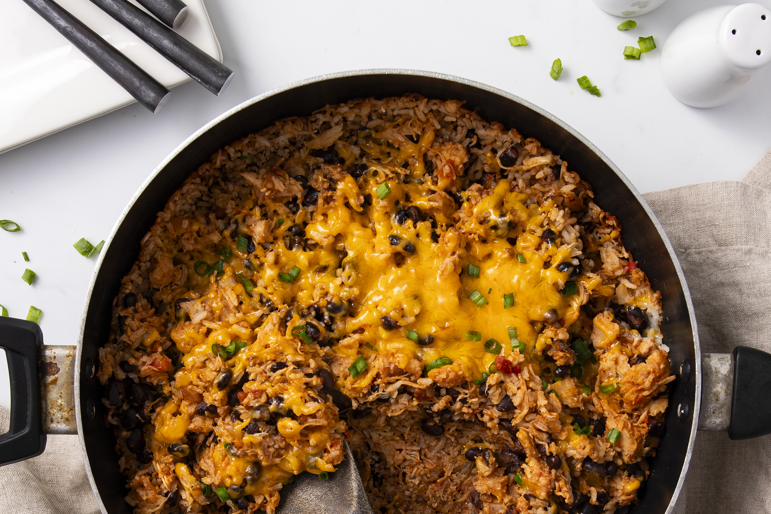 Nothing beats coming home from the ranch and sitting down to a plate of Cowgirl Chicken Skillet! This is true even without the ranch! Tender rice, cooked in savory chicken broth and spiced with zesty enthusiasm, is the best base for a hearty and happy meal! Juicy chicken, creamy beans, and bright salsa all come together to ensure that no bite is ever bland or boring! Let's all give a "yee-haw" for Cowgirl Chicken Skillet!