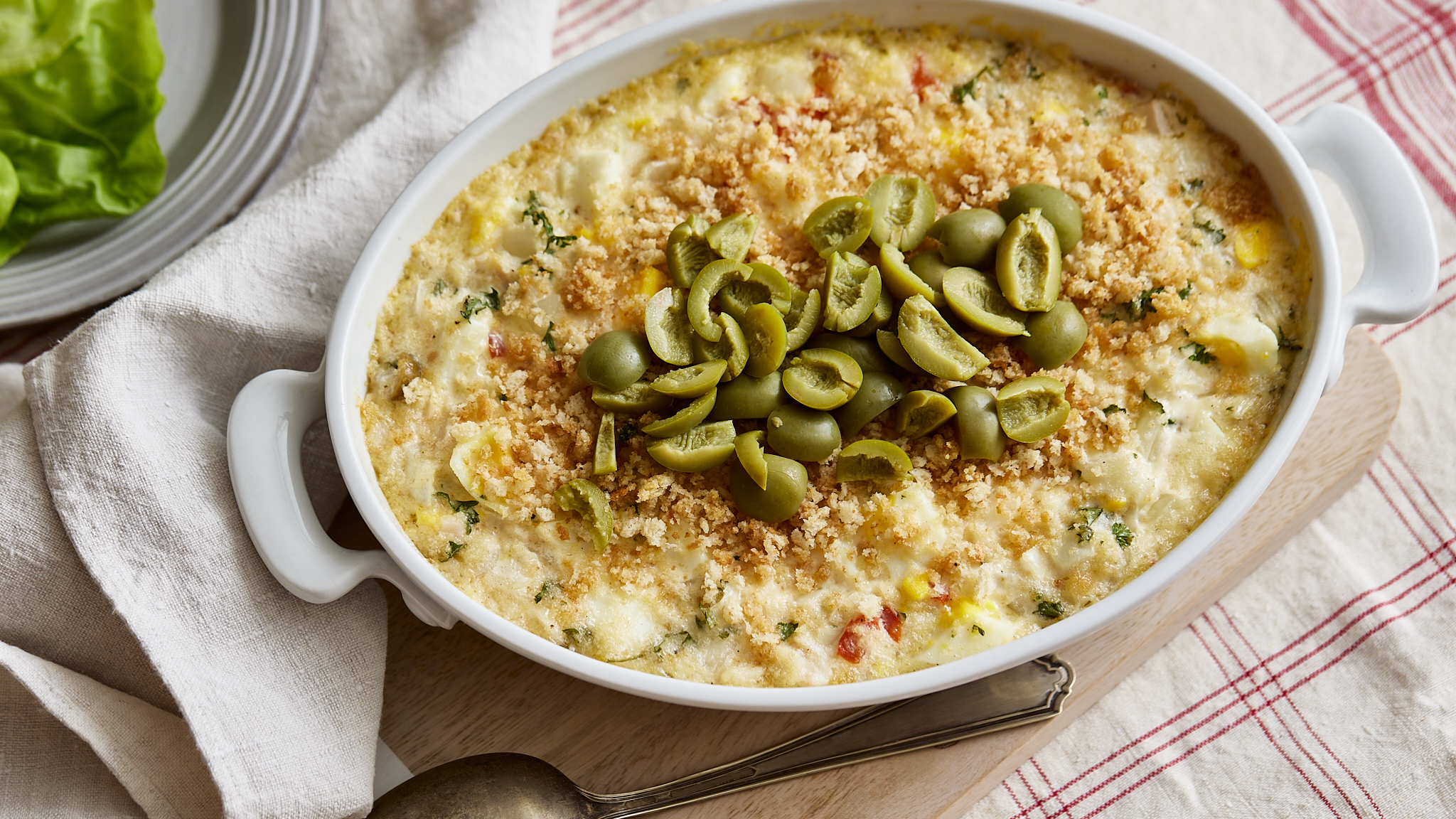 Ahh the Crab Cake Casserole! This stunning seaside appetizer is finally truly shareable! Filled with all the sweet and savory crab flavor and creamy, tangy flavor of its namesake, Crab Cake Casserole also contains plenty of surprises. Extra tangy olives and super savory hard-boiled eggs round out the fresh-caught flavor. Enjoy it with your favorite people and take your taste buds on an oceanic adventure!