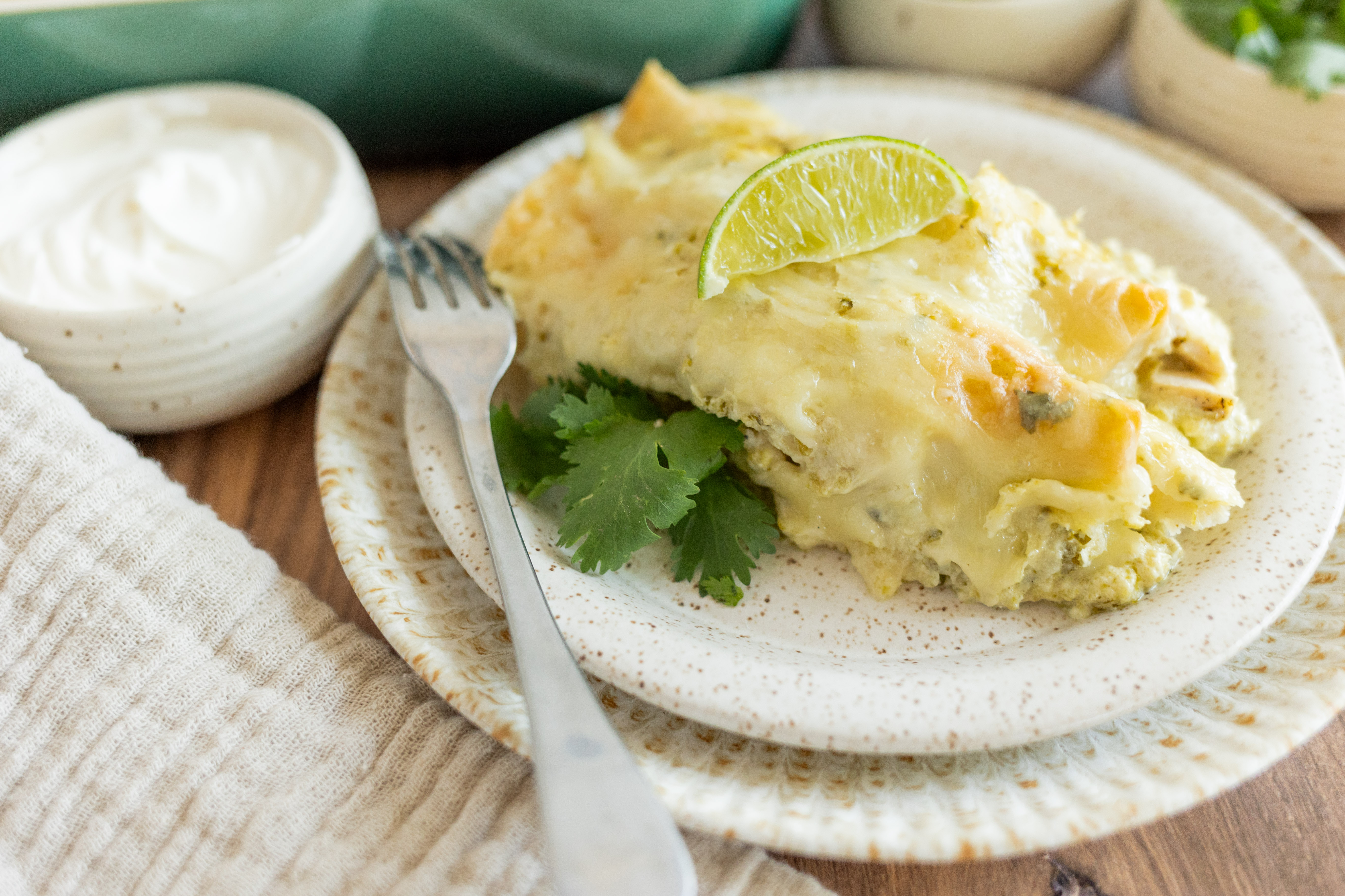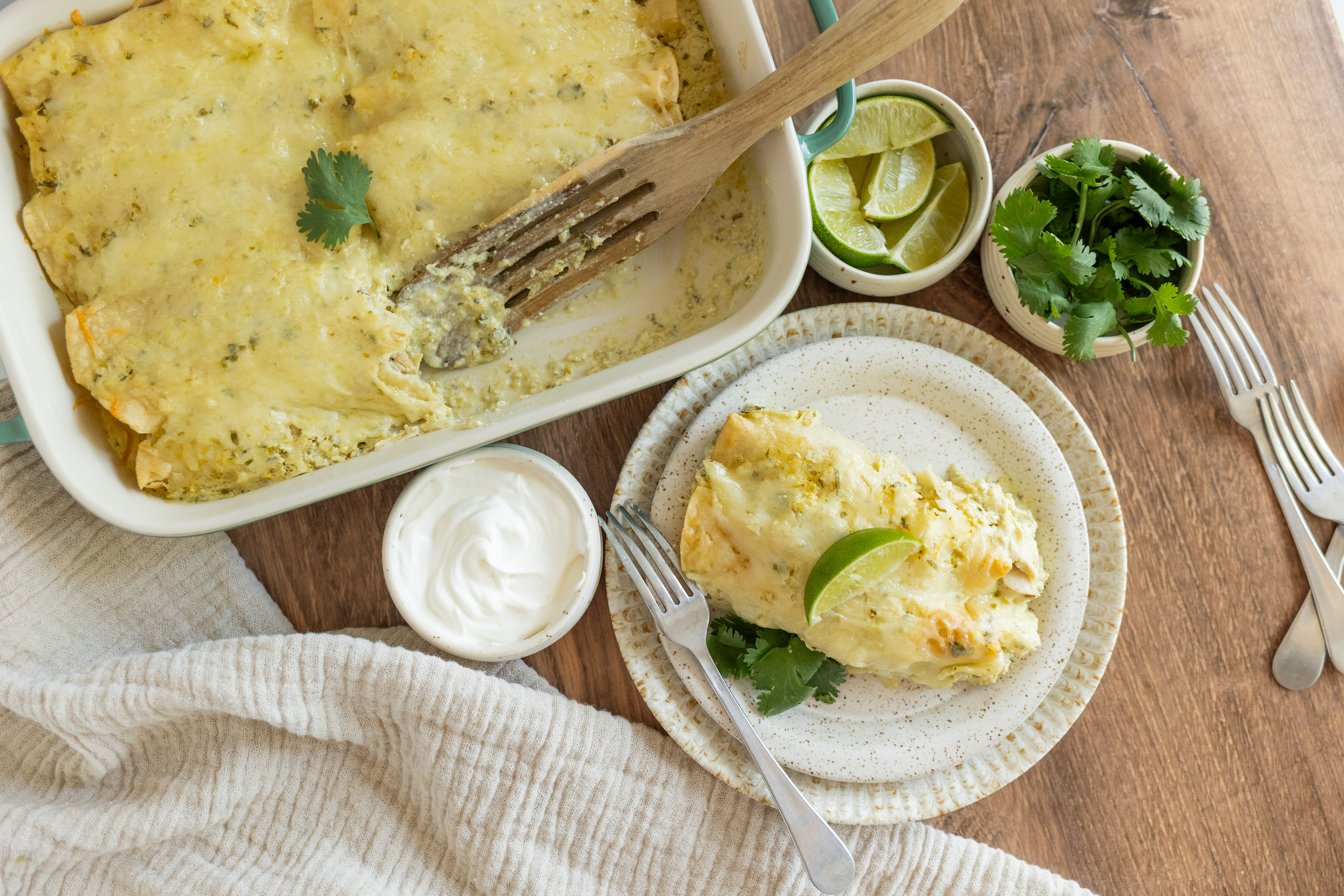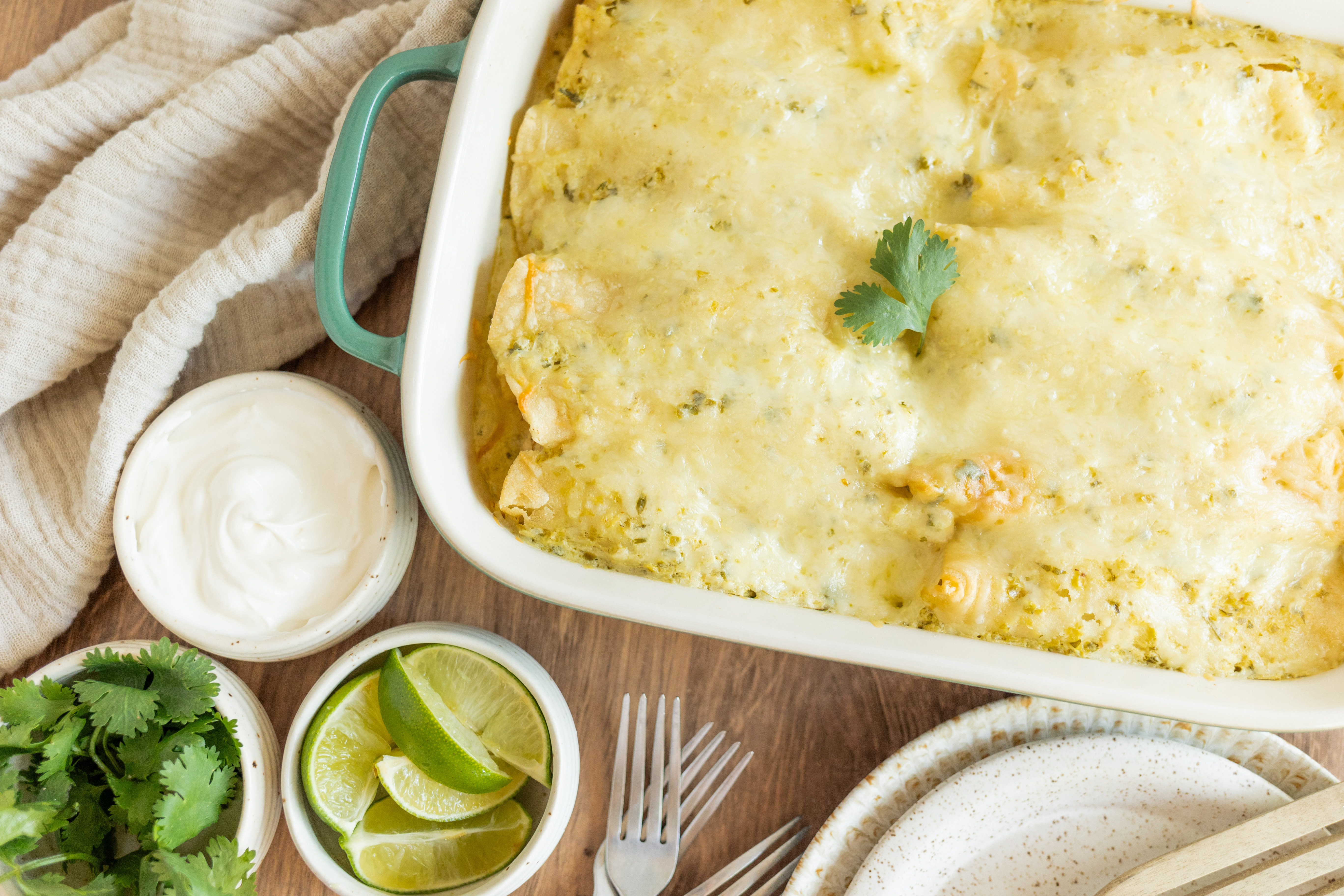 It's Tuesday, the gang is all coming over, and you need a great Mexican dish that can satisfy everyone. So, get the sombreros out, because Creamy Chicken Enchilada Bake will ring the dinner bell and get the party started! Tender, shredded chicken is rolled up in a soft tortilla, topped with a flavorful, chile-sour cream sauce, loads of Monterey Jack cheese, and baked until golden-brown. Creamy Chicken Enchilada Bake is the perfect dish for a perfect Tuesday night... or any night!