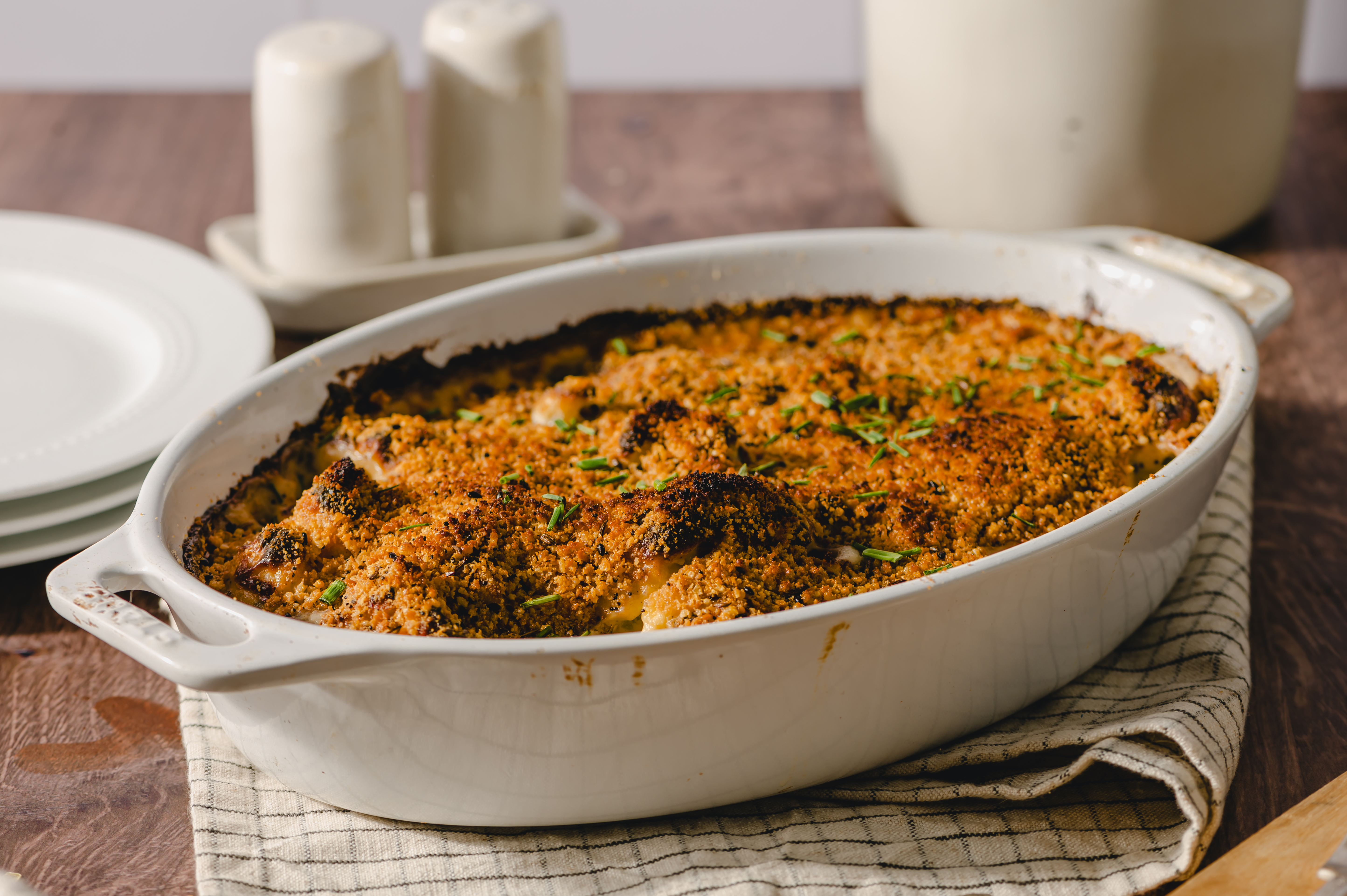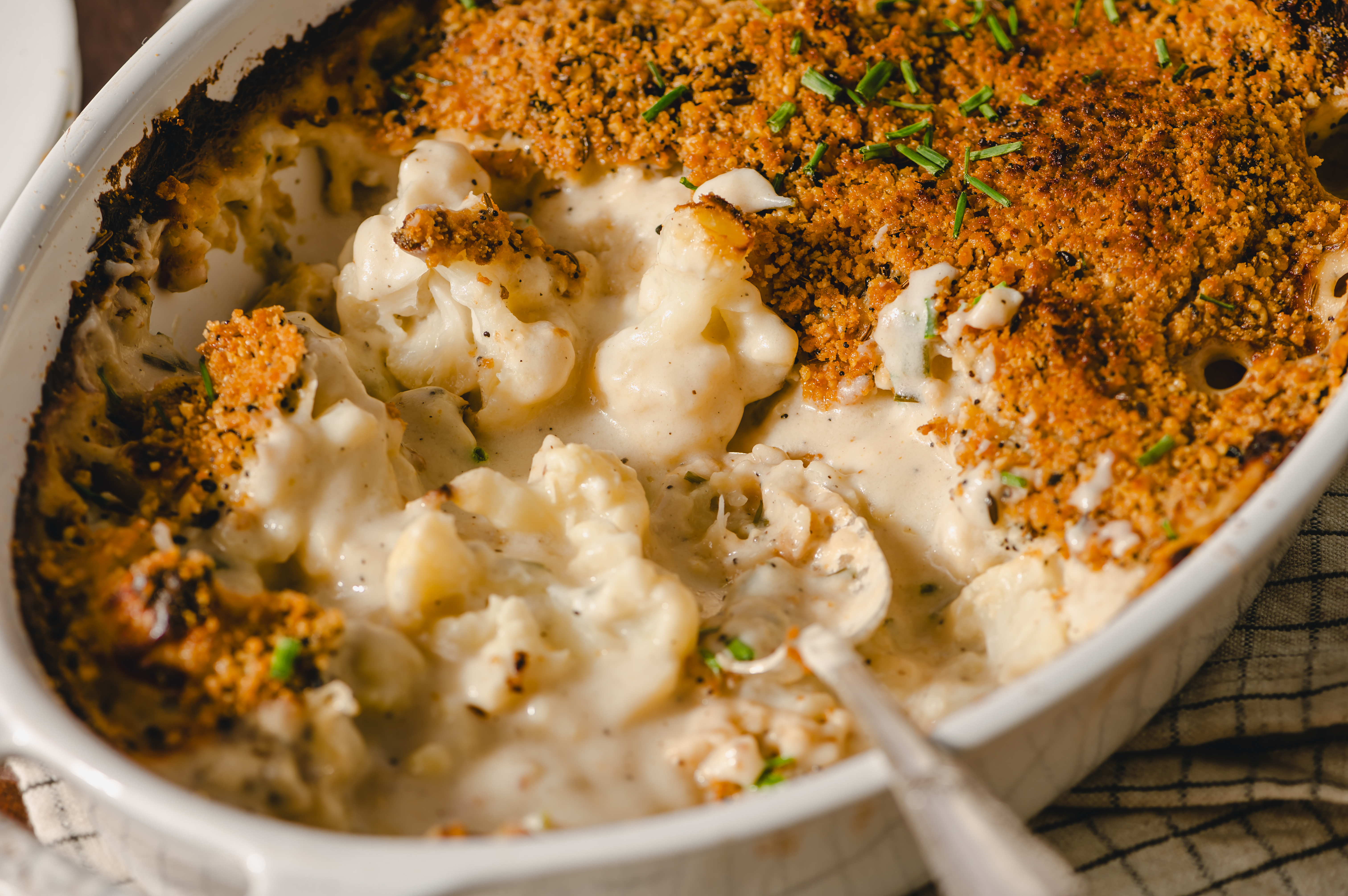 Step 15 -Place the baking dish in the oven and broil the cauliflower mixture until the cheese has melted and the top is golden, about 2 minutes.