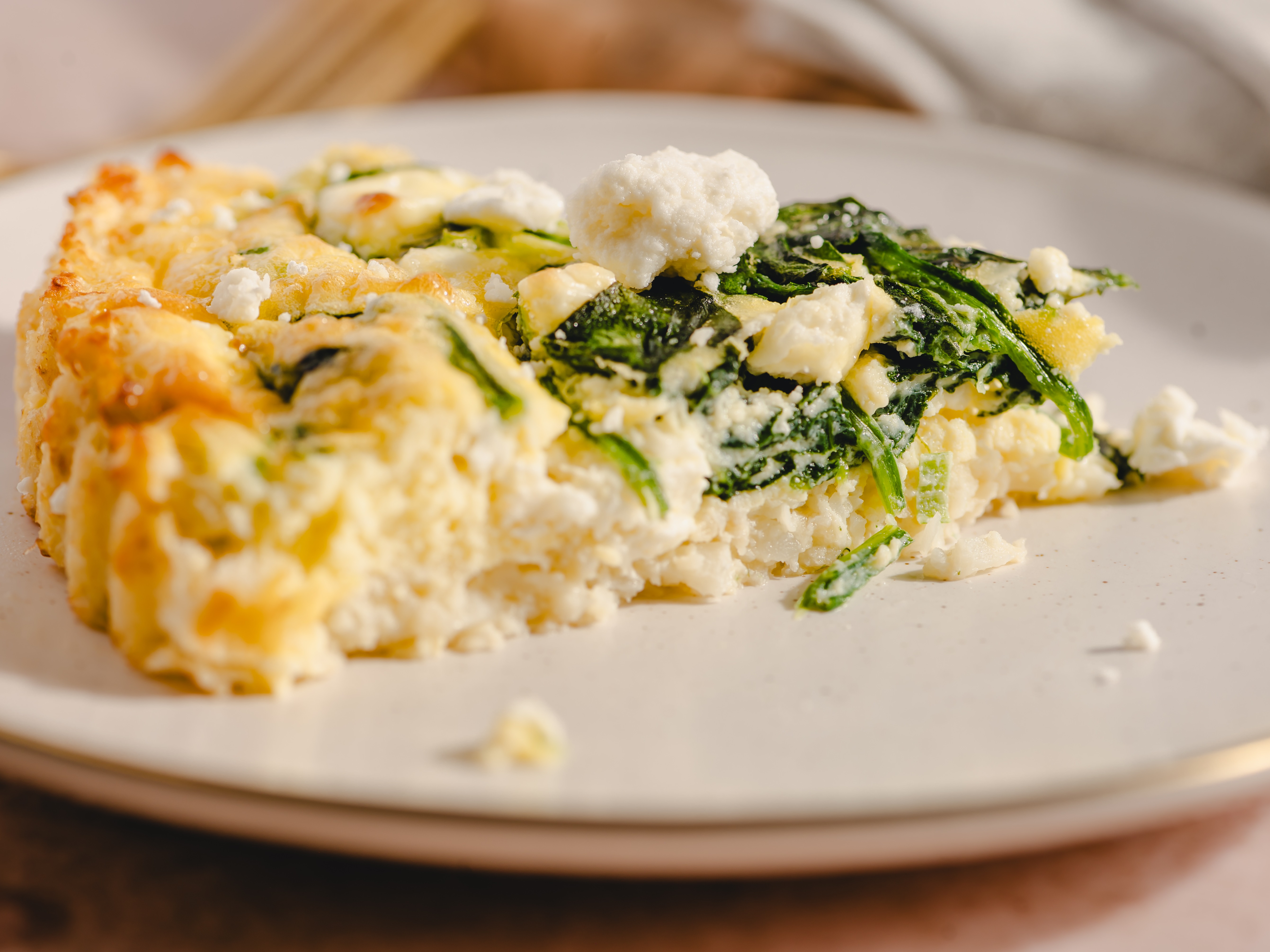 She is an icon, she's incredible! That's Fancy-Girl Quiche for ya. Perfectly classy and just a smidge upscale, but still completely approachable, this delicious golden breakfast favorite is clothed in a fluffy, cheesy spinach filling all on a crispy cauliflower crust. She's everything all the other breakfast mains want to be. Nothing can ever compare to the one and only Fancy-Girl Quiche!