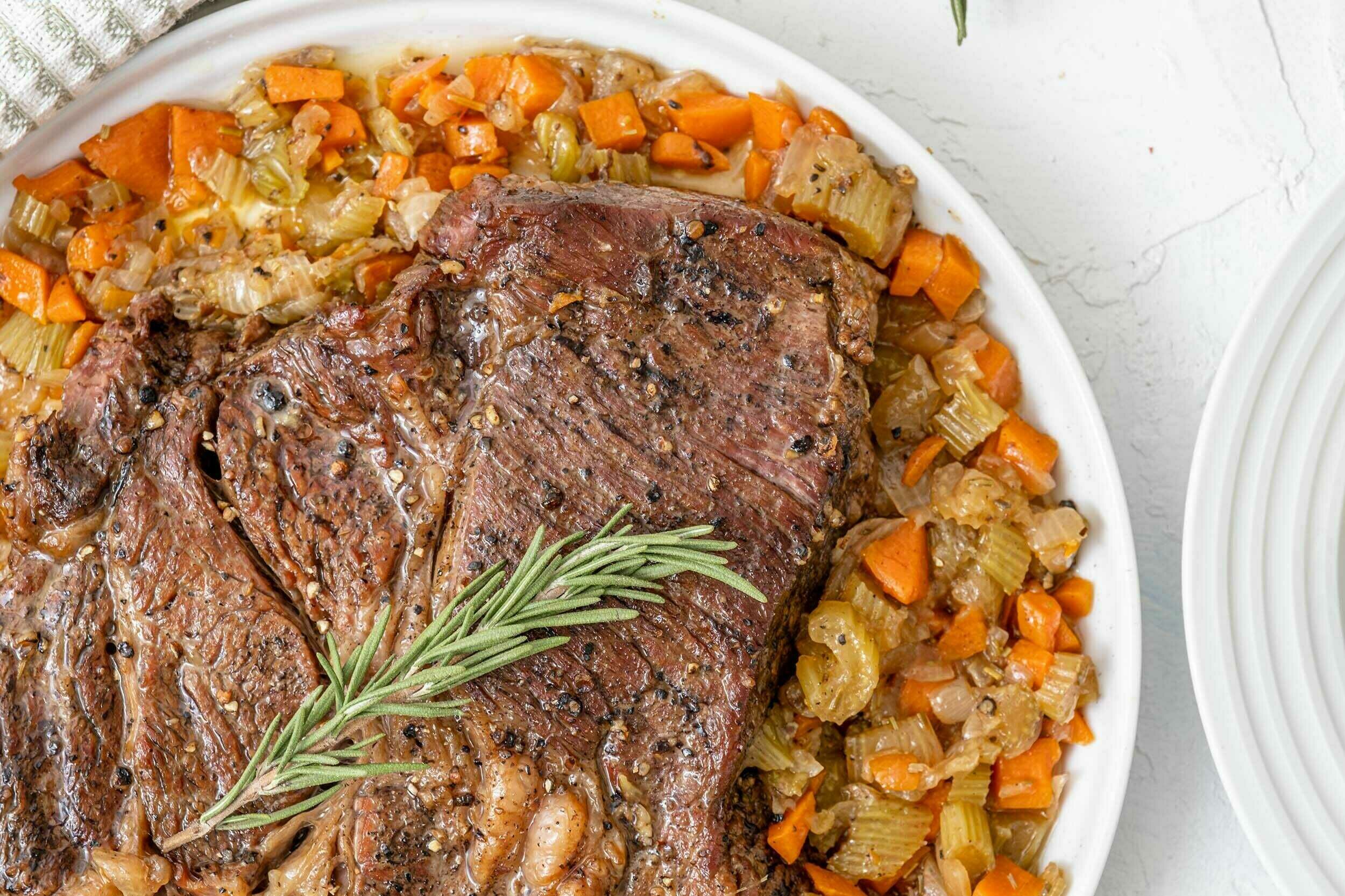 Step 10 -Put the pot in the oven and roast until the chuck roast becomes tender, about 2 1/2 to 3 hours.