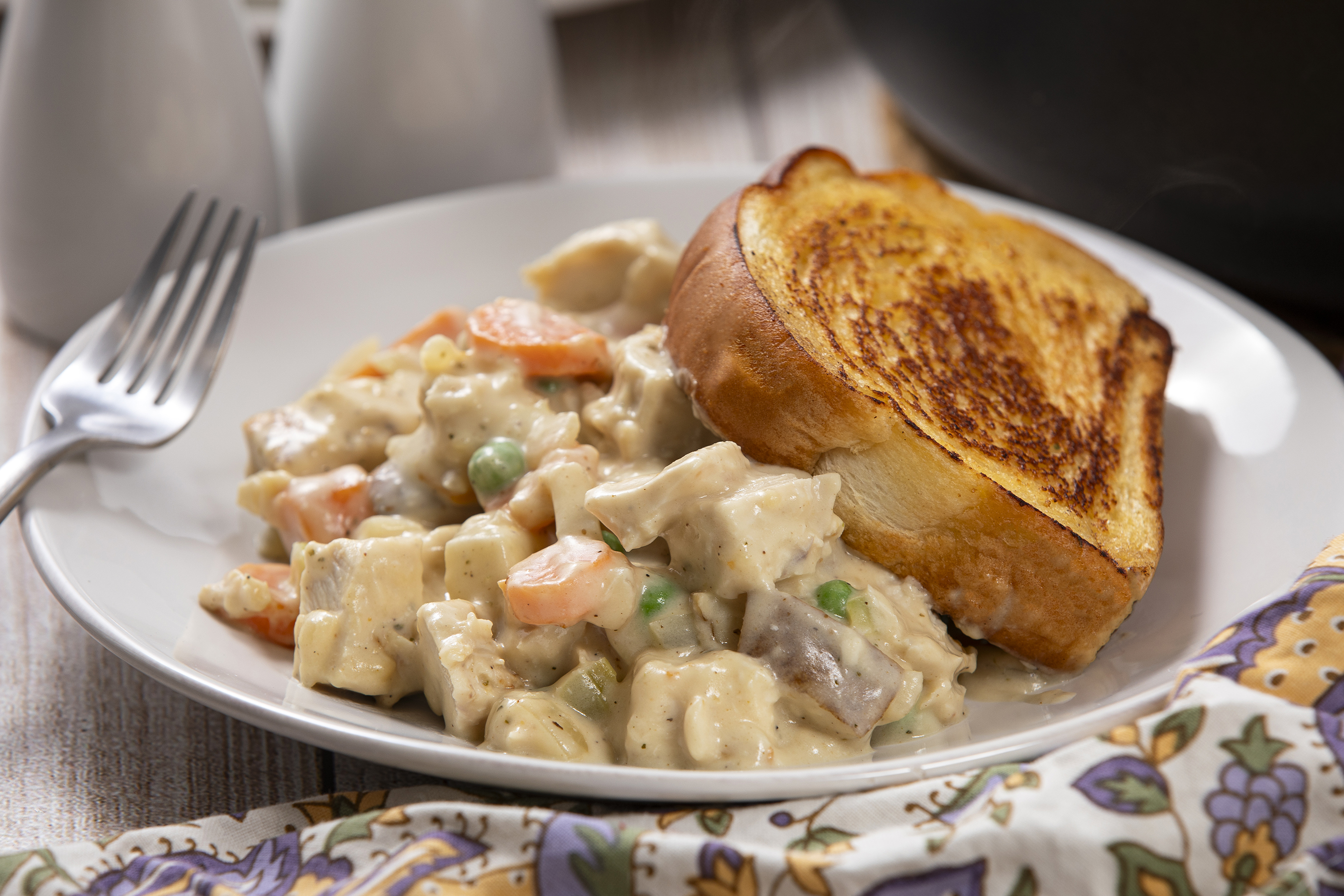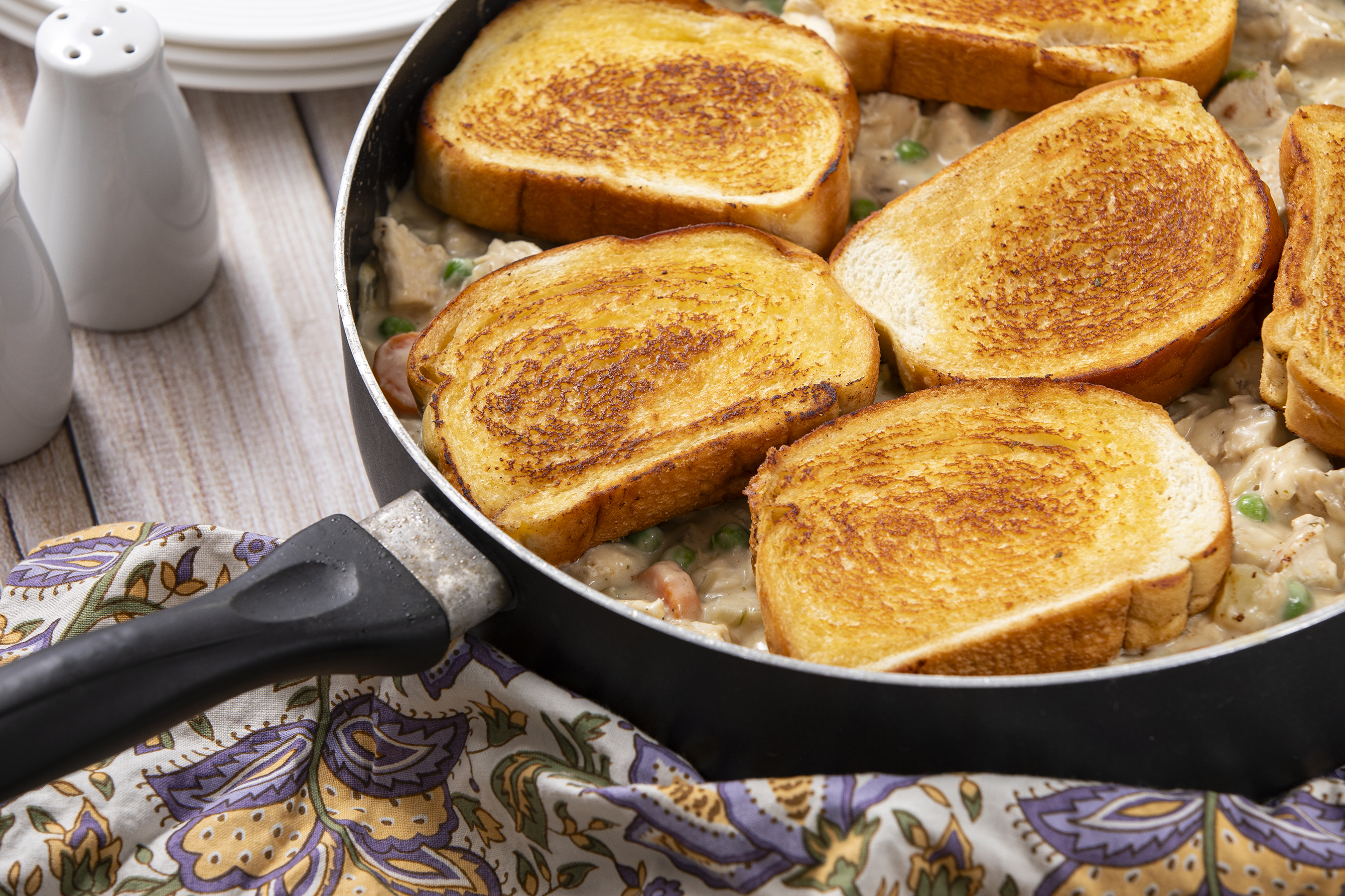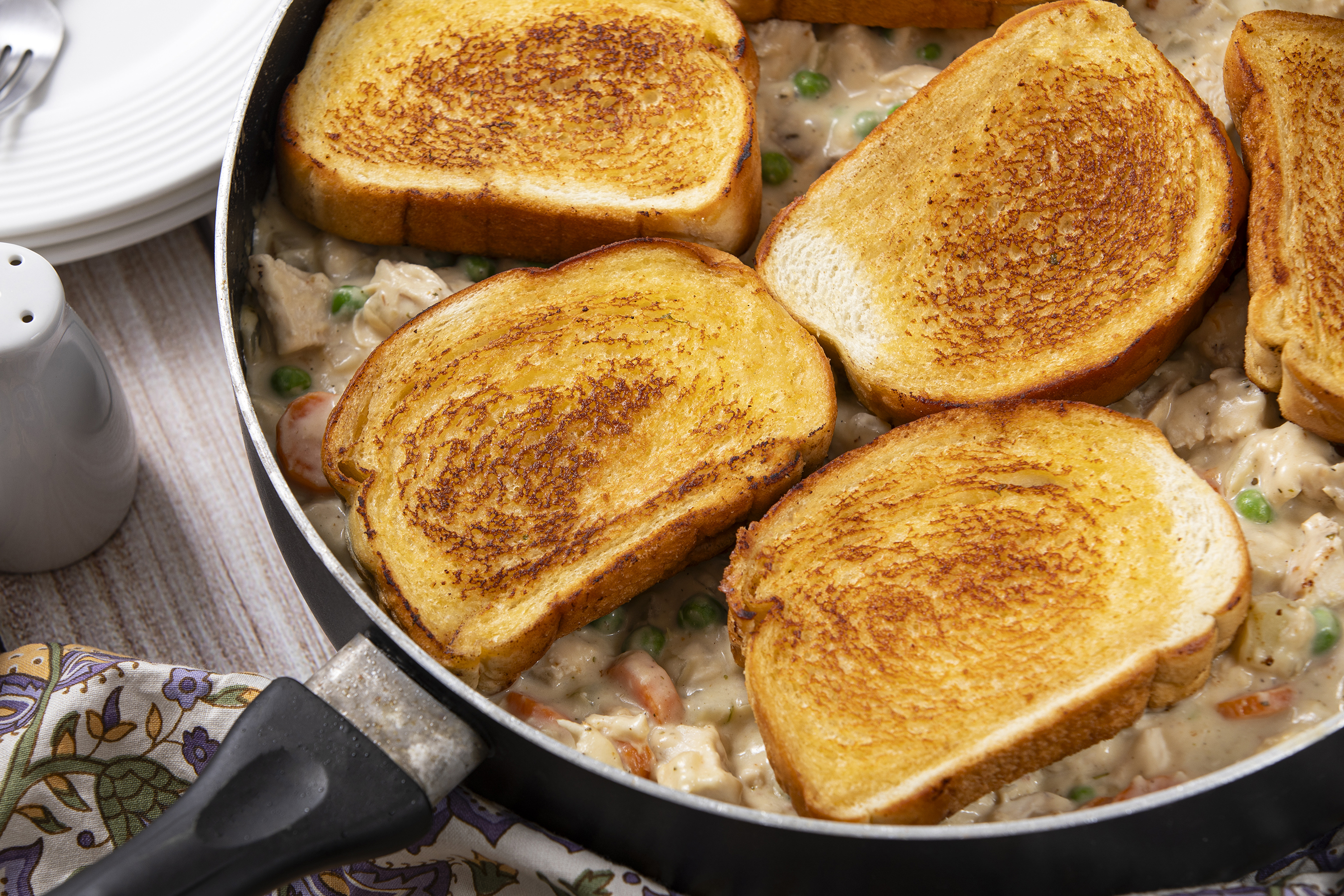 This is the perfect meal for when the kids come in after playing in the snow or when they just want something homespun and comforting! Kid's Favorite Pot Pie has tender chicken and fluffy potatoes mixed in a creamy sauce (with veggies, but don't worry, the kids won't notice). But it's the crust that will really sell them on this dish. Because... it's garlic bread! Even if you don't have children joining you for dinner, Kid's Favorite Pot Pie is sure to become your favorite, too!