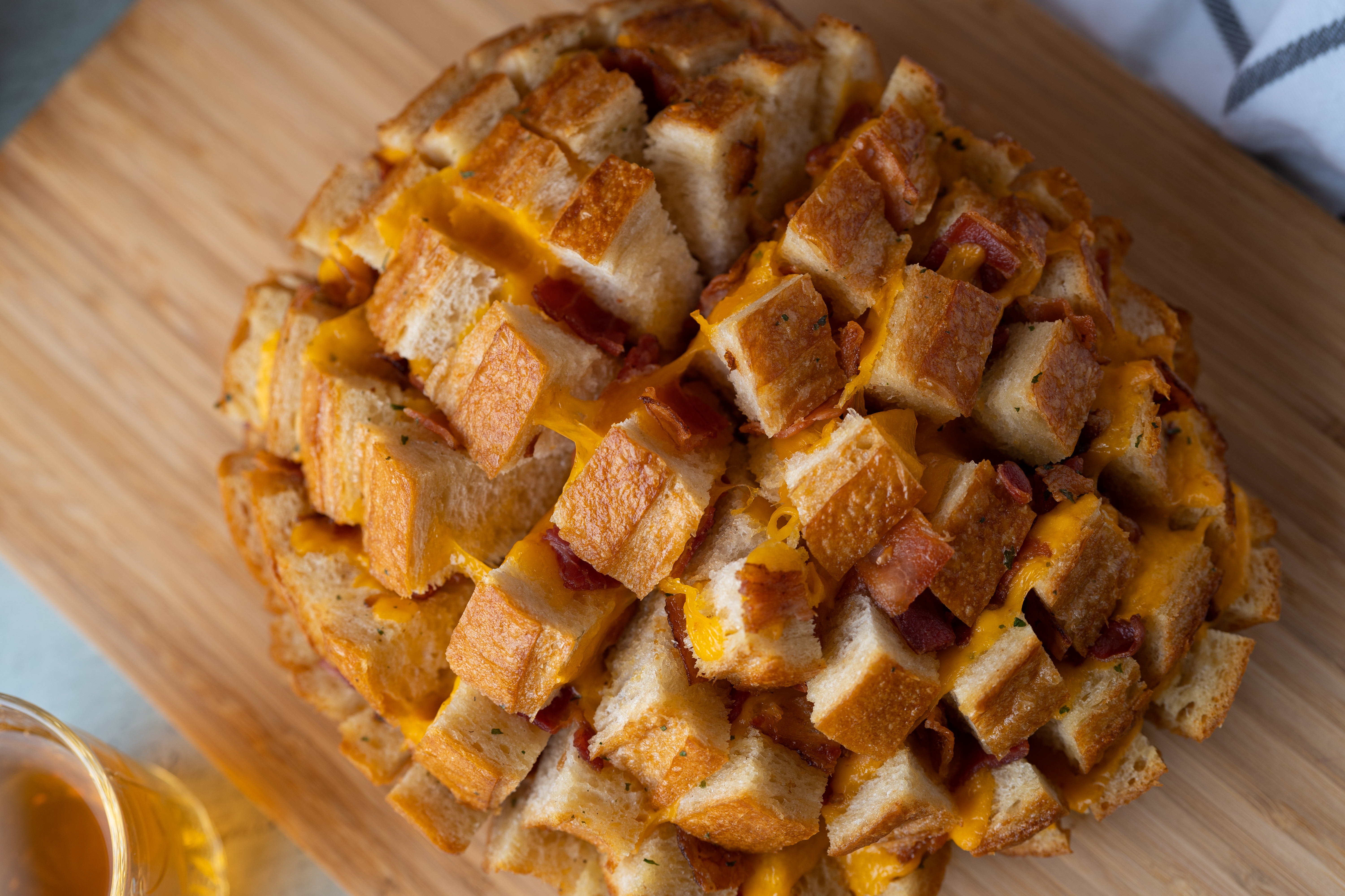 If you want to make sure your party is loaded with fun AND good flavors, then you must add this Loaded Pull-Apart Bread to your menu! This buttery mound of easily accessible sourdough bread cubes is literally loaded with melty cheese, crispy bacon, and tangy ranch seasoning. Half the fun is making it and the other half is eating it! Loaded Pull-Apart Bread will certainly be the main focus of your next shebang, so get your fingers ready for some pull-apart participation!