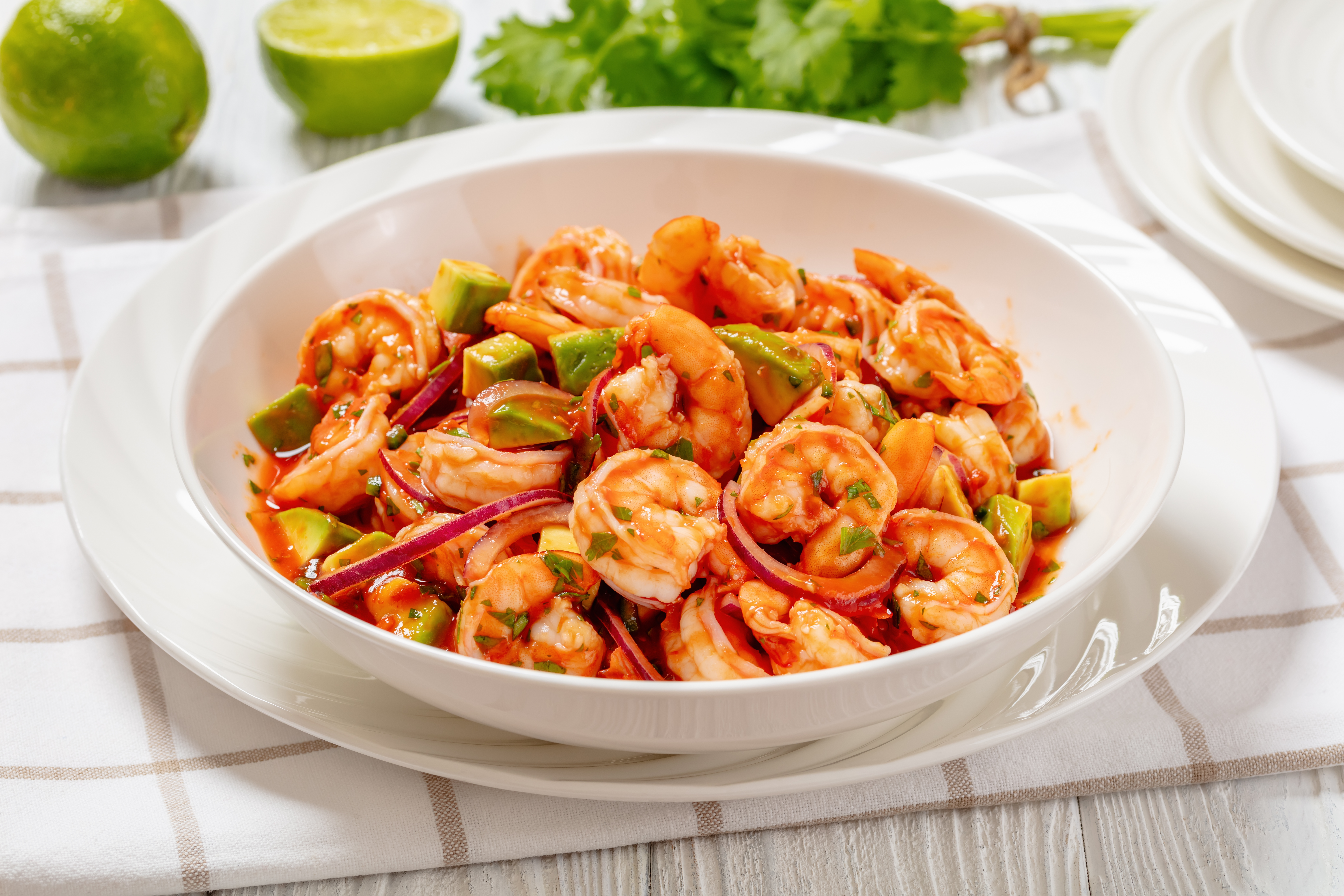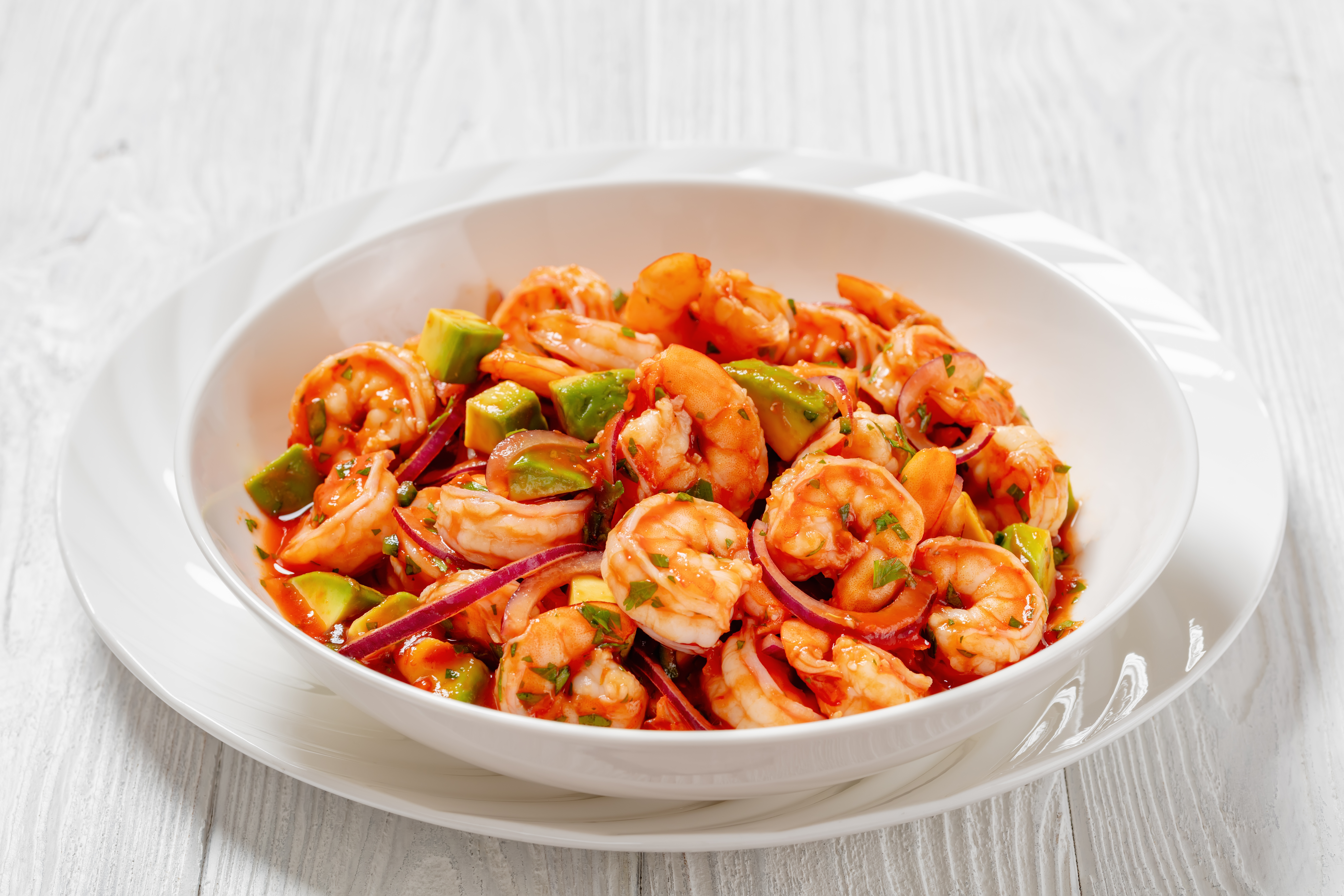 Step 1 -In a large bowl, add the shrimp, the avocado, the red onion, the jalapeño, and the cilantro and mix to combine.