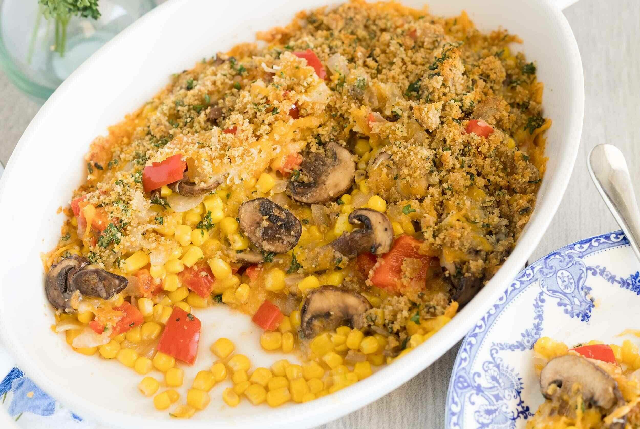 It's easy to think of vegetables as a side dish rather than the main course, but the Monterey Veggie Bake will change your mind about that! Hearty mushrooms, savory onions, and bright red peppers are mixed with aromatic garlic and smoky-sweet brown sugar to bring out the best in the garden flavors. Layered with melty sharp cheese and topped with crunchy, herby breadcrumbs, the Monterey Veggie Bake is vegetarian cooking like you've never tasted before! It's a wonderful way to become excited about eating your veggies.