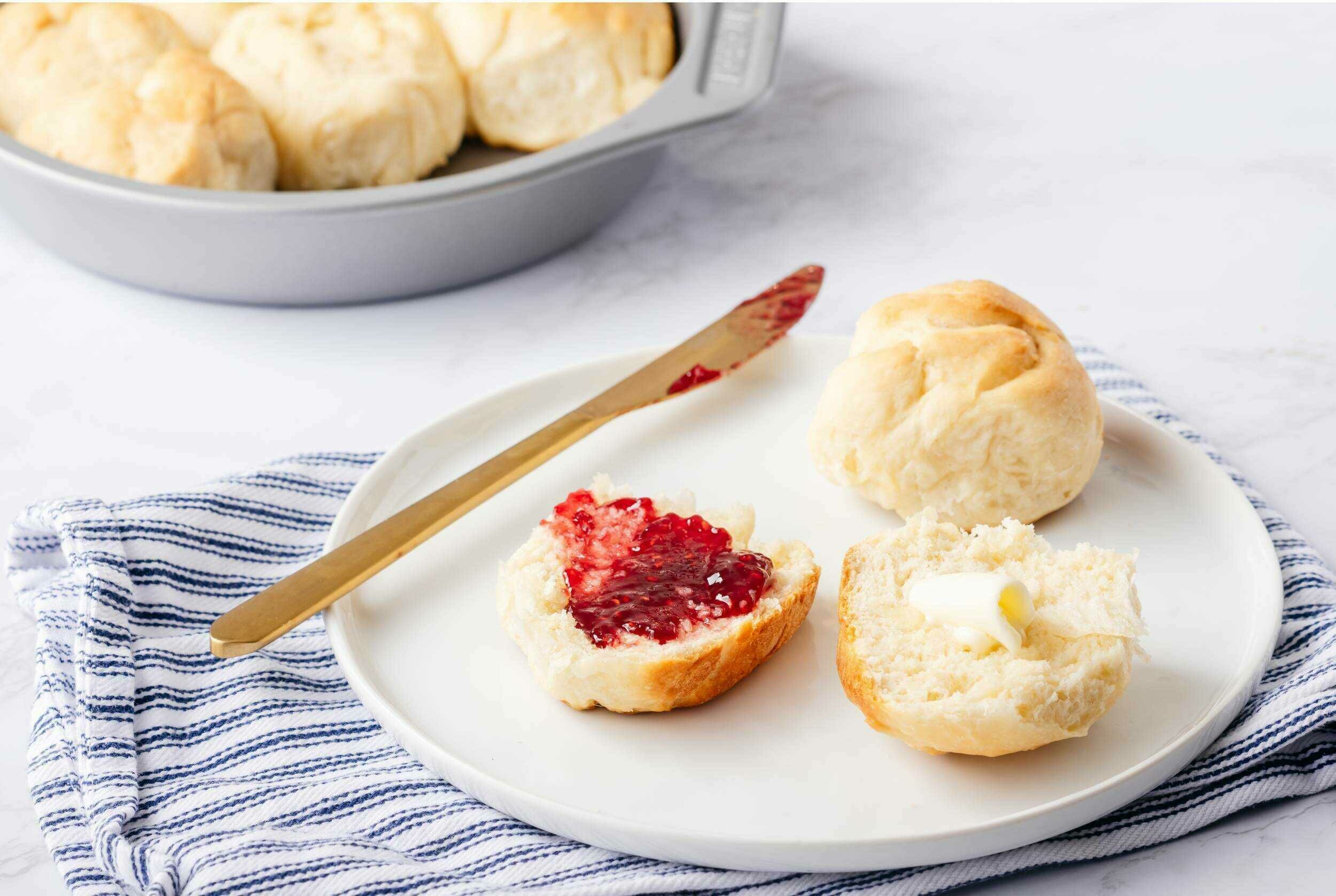 Freshly baked delights from the old world! Old World Pull-Apart Buns are the very definition of buttery, pillowy rolls, the kind you can imagine piled high next to creamy soups or home-grilled steak dinners. Brushed with even more butter (always a good idea), Old World Pull-Apart Buns might just distract you from finishing the main course. Thank goodness they make enough for everyone. Who knew pull-apart rolls could bring people together?