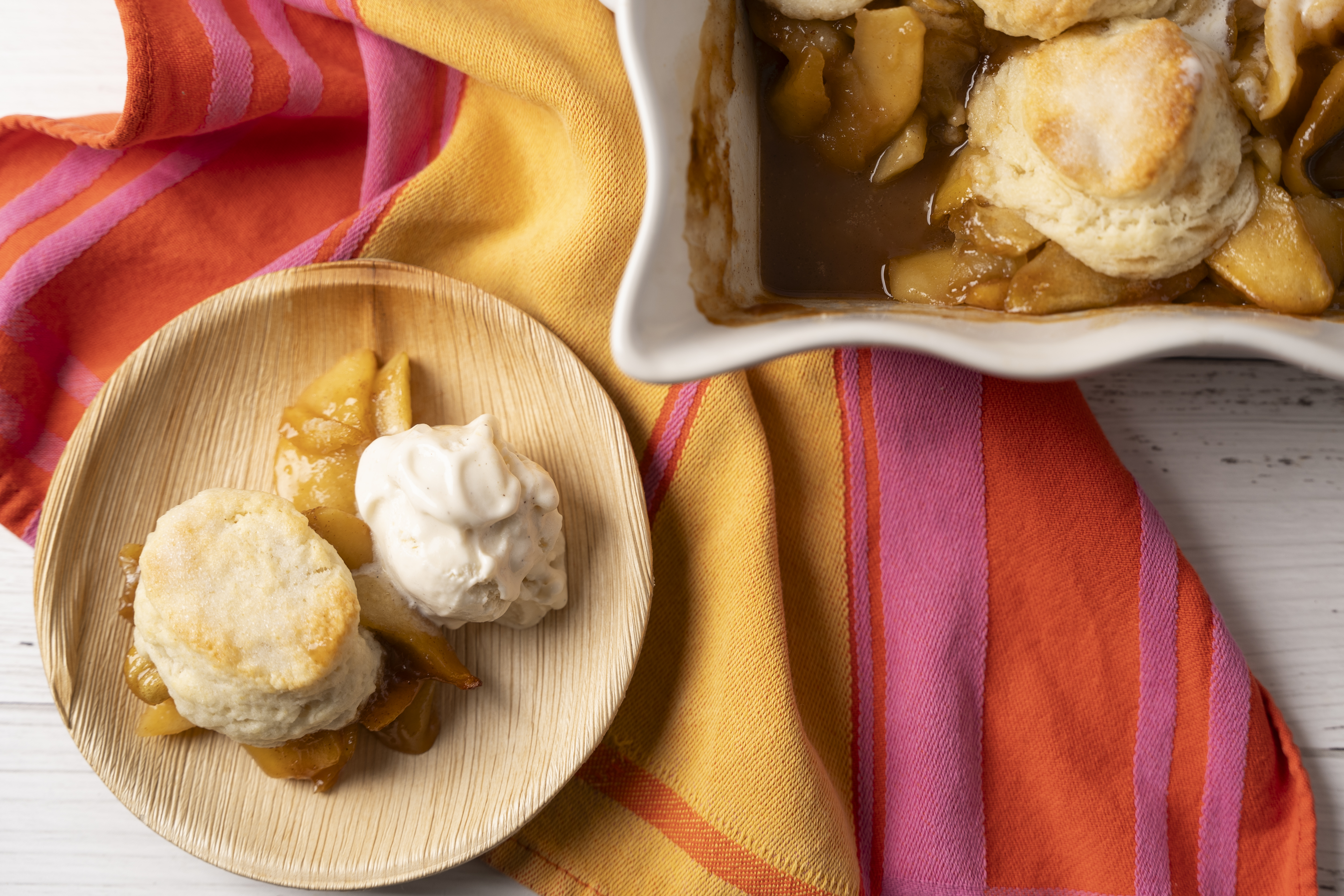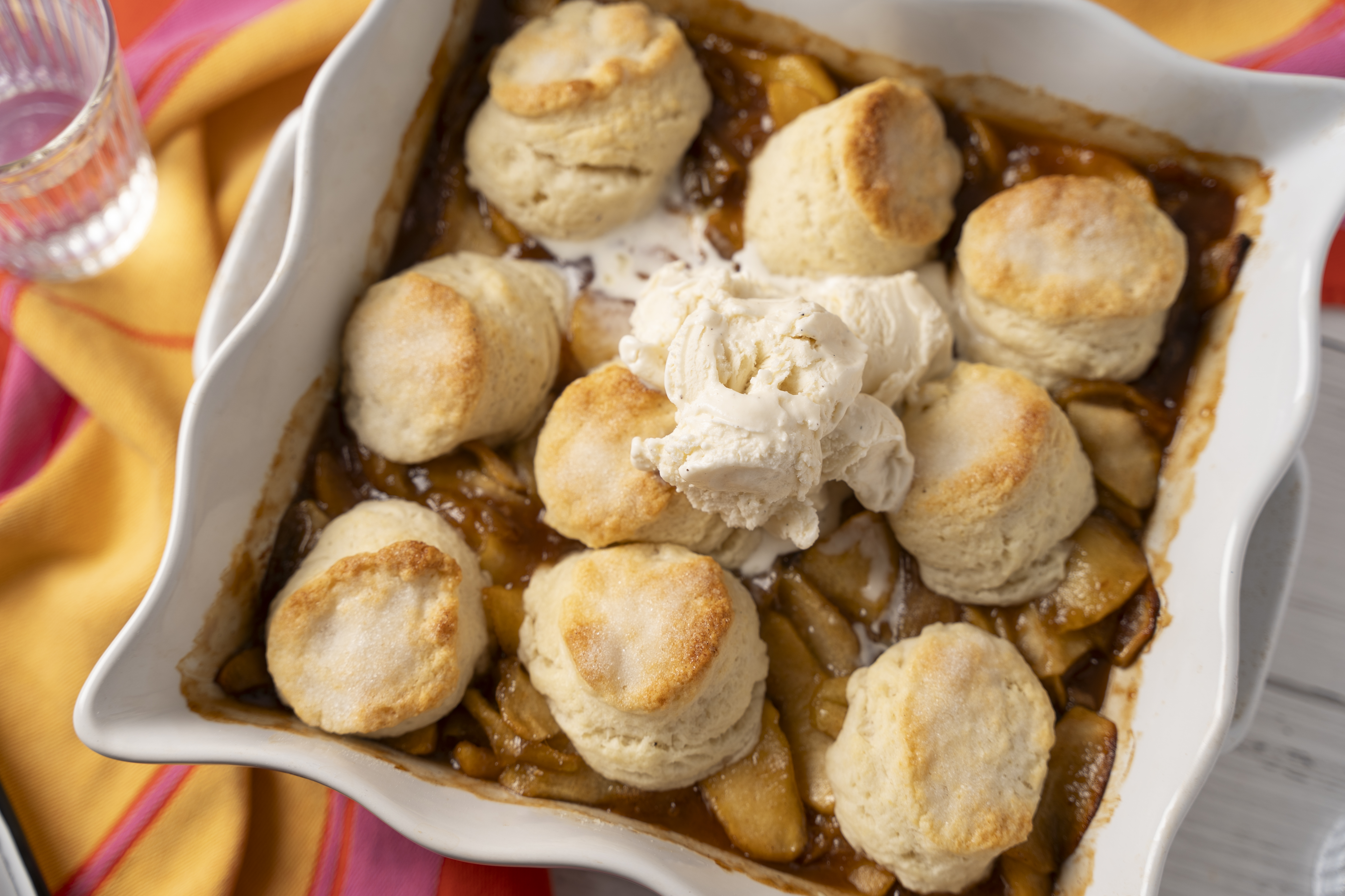 What makes Outstanding Apple Cobbler Bake outstanding? Well, it's gotta be the biscuits, right? Flaky, buttery, tender biscuits that completely rewrite the rules about what a cobbler topping should be! On second thought, it might actually be the jammy, fruity, apple filling with just the right amount of cinnamon flavor and sweetness. But really, it's both things coming together that makes Outstanding Apple Cobbler Bake so... well, outstanding!