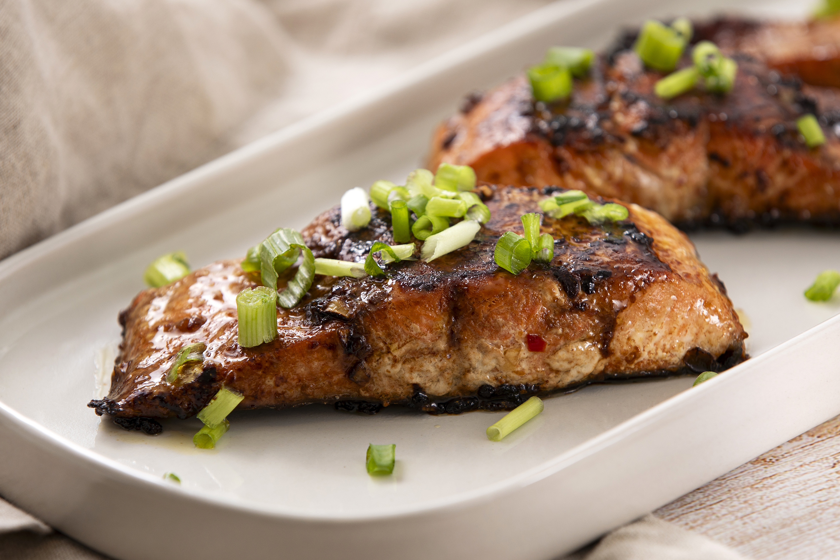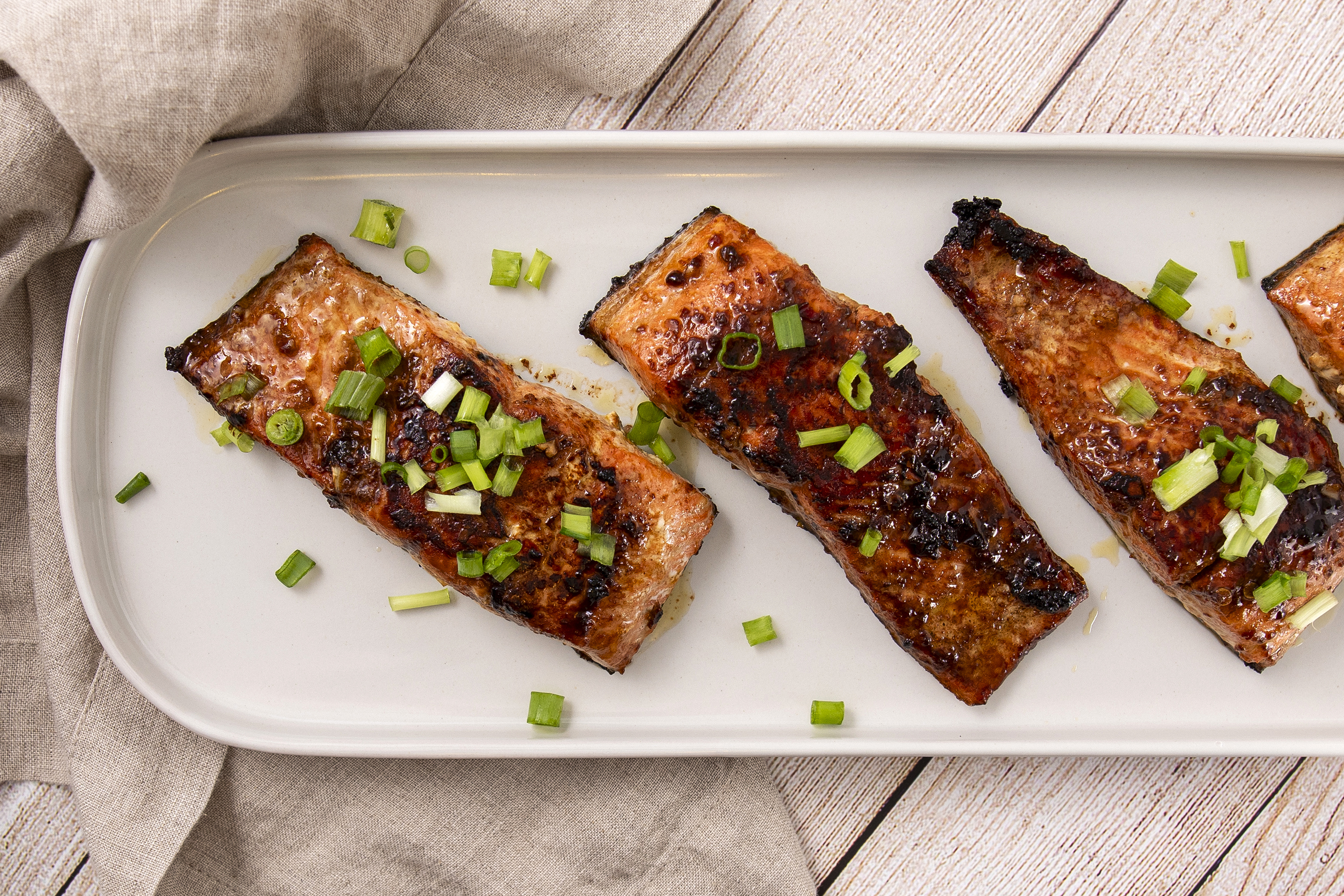 Pan-Fried Ginger Salmon is just amazing! The succulent, flaky fish is rosy and delicious all on its own, but the marinade is what makes this dish special. Soy sauce umami, the spice of ginger, tangy Chinese mustard, vibrant sriracha, and sweet maple syrup all come together to make a sauce that coats each bite in an addictive happiness! With crispy golden skin and a sprinkling of scallions for freshness, Pan-Fried Ginger Salmon is Fish Fridays made fancy!