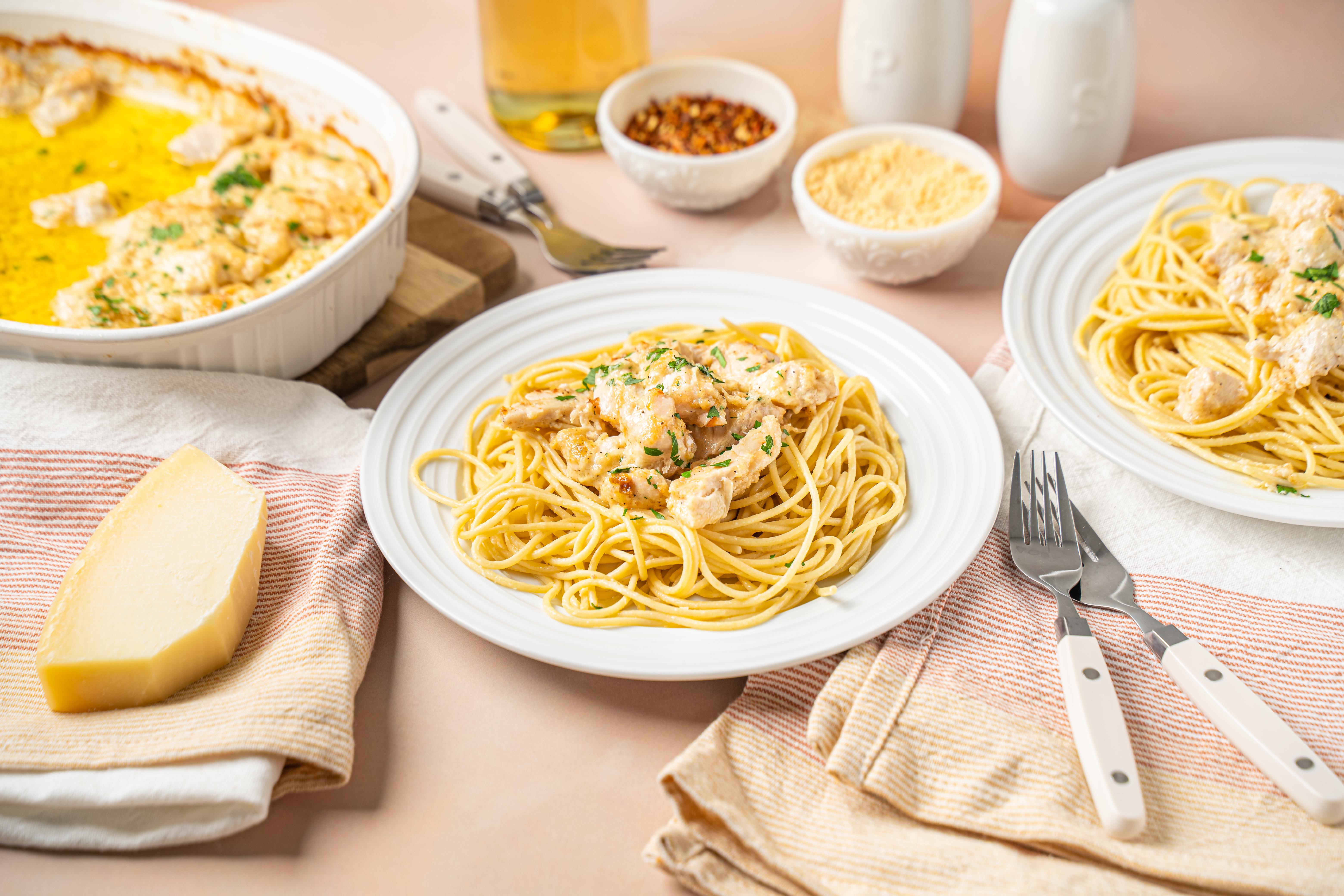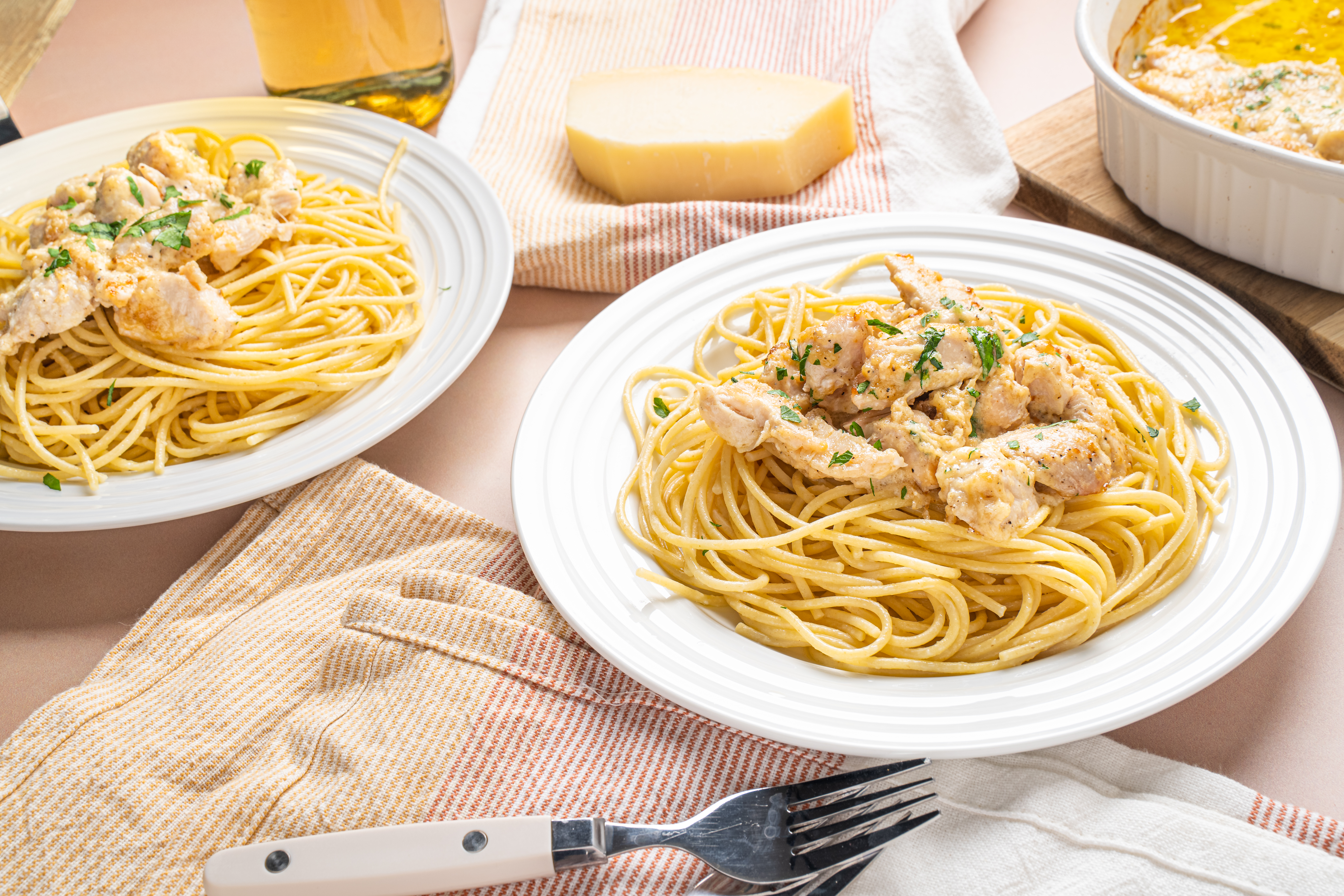 Parmesan Chicken Bake should be the champion of dinnertime! In under 45 minutes, you can have the juiciest, creamiest, cheesiest chicken sitting atop your favorite pasta. That's way faster than driving all the way to your go-to Italian restaurant, waiting, ordering, eating, and then driving home! You can have the filling, exciting, Italian-themed dish you were longing for, all while staying at home and saving so much time (and money)! Parmesan Chicken Bake definitely brings home the gold in our eyes, and there will never be anything else like it!