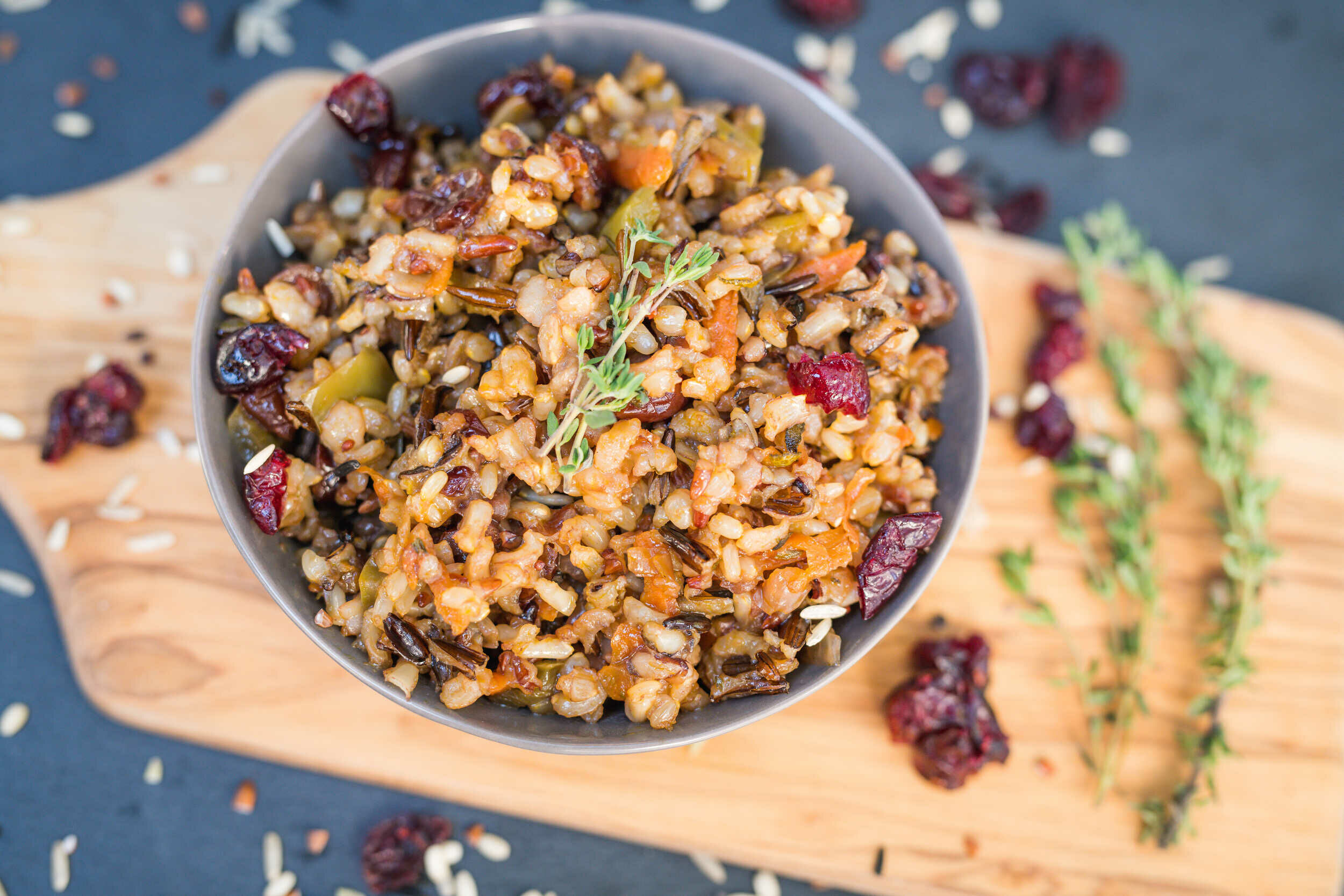 Great journeys start with a single step, and great meals start with a single dish. This Pilgrim Rice Pilaf is an adventure of flavors; mountains of fluffy rice lush with bold, herby seasonings and notes of mint and balsamic that beckon you to have just a little more. Saturated in roasted, savory flavors and sparkling with the tart sweetness of dried cranberries, Pilgrim Rice Pilaf is like a travel fantasy for your tongue!