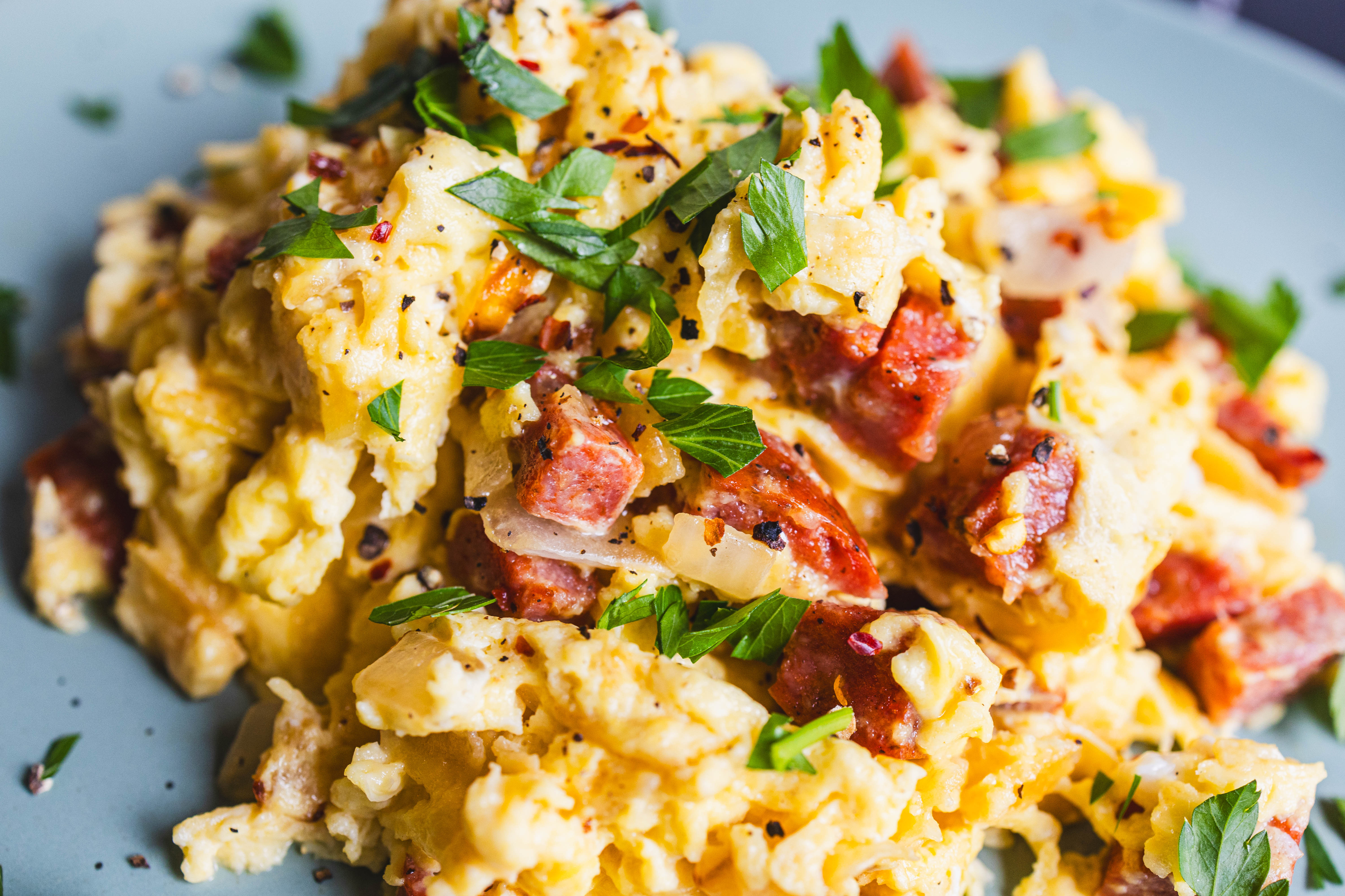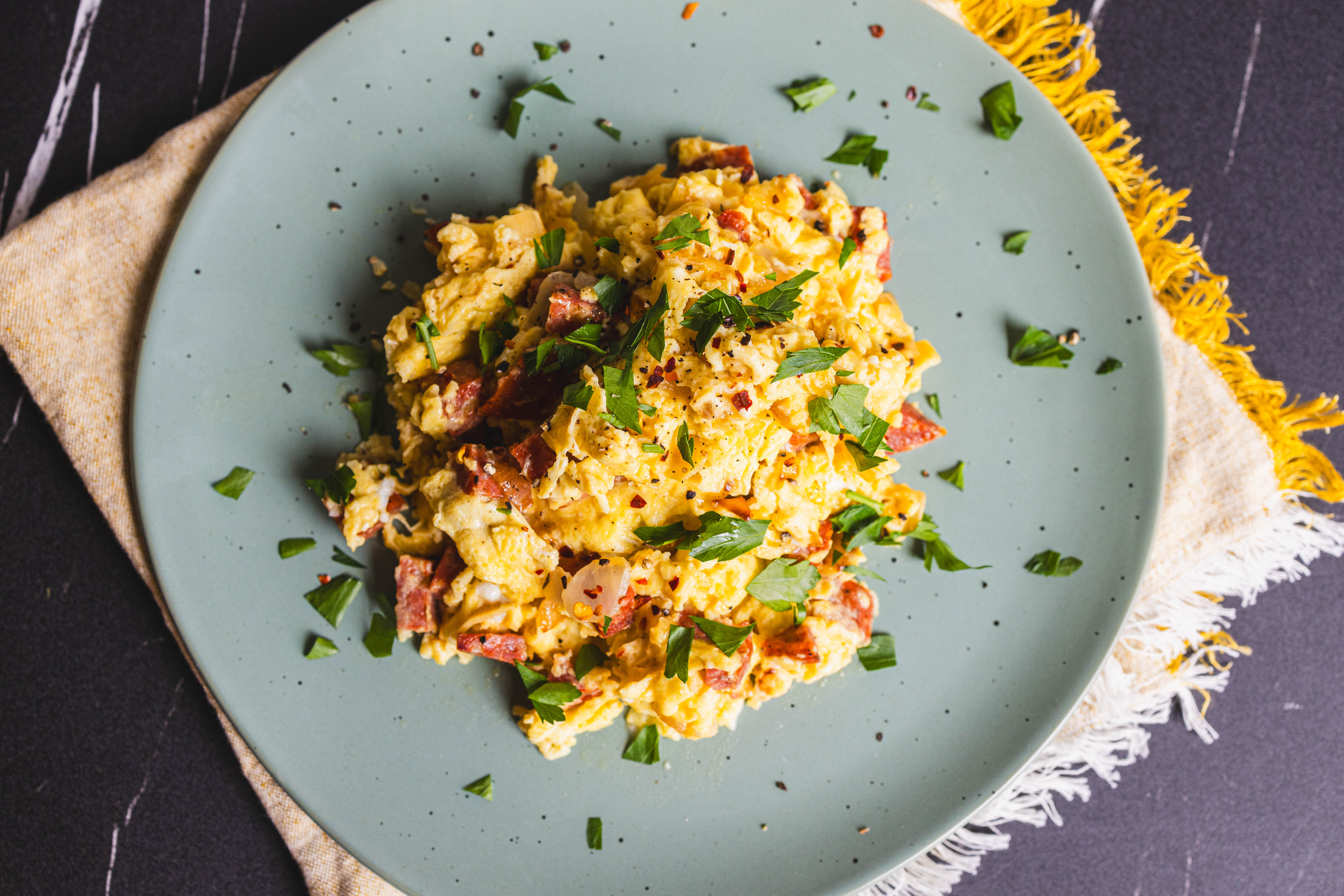 Okay, so Potato Chip Eggs seem odd at first glance, but let us assure you... these eggs are not to be missed! The potato chips add a hash brown-like crunch to the tender, creamy eggs, accented of course by the spicy and savory chorizo mixed in! There's no need for ketchup with Potato Chip Eggs, because these eggs pack all the flavor you could want into each bite! Save a plate of these delicious oddities for us, please!