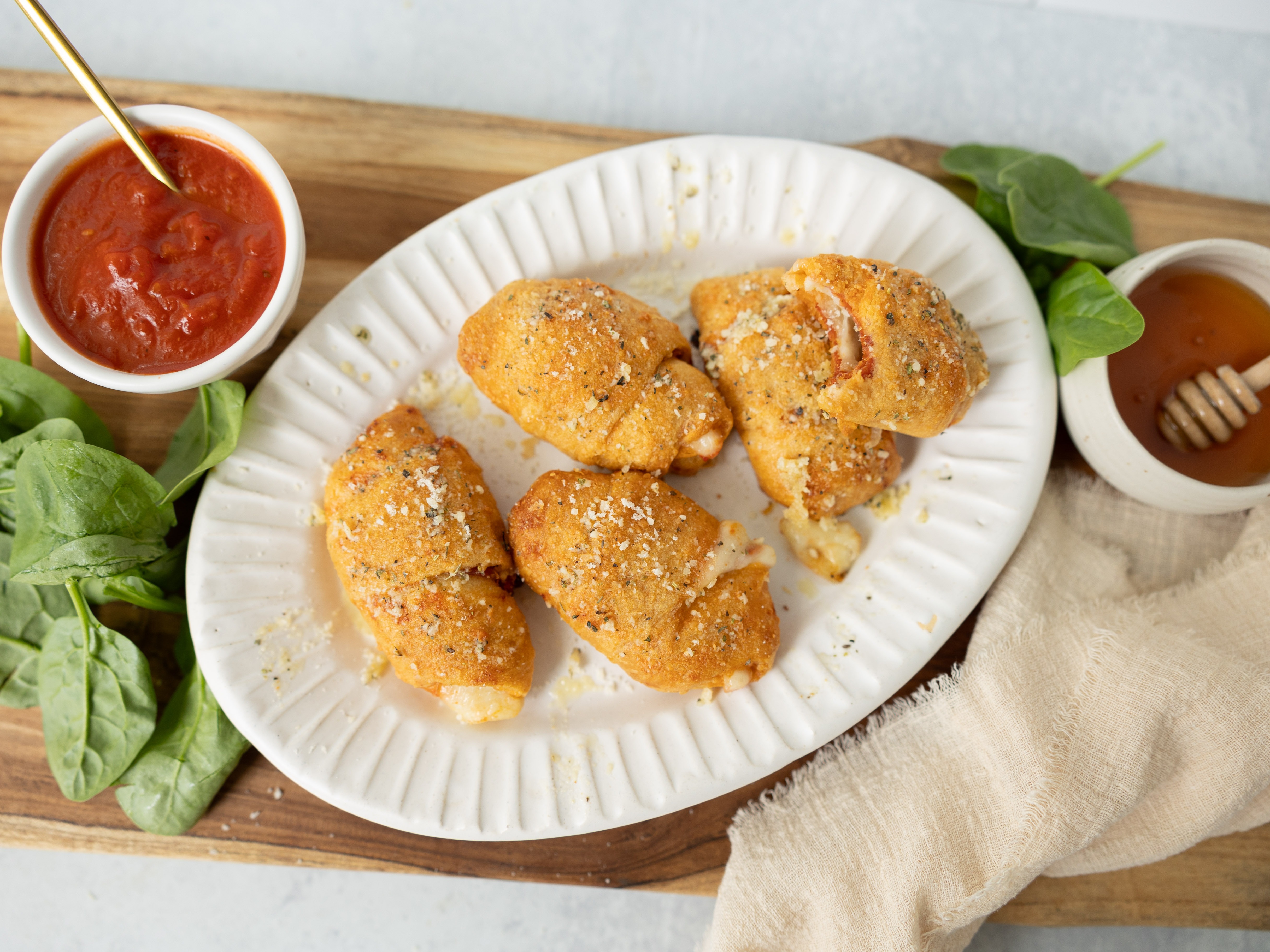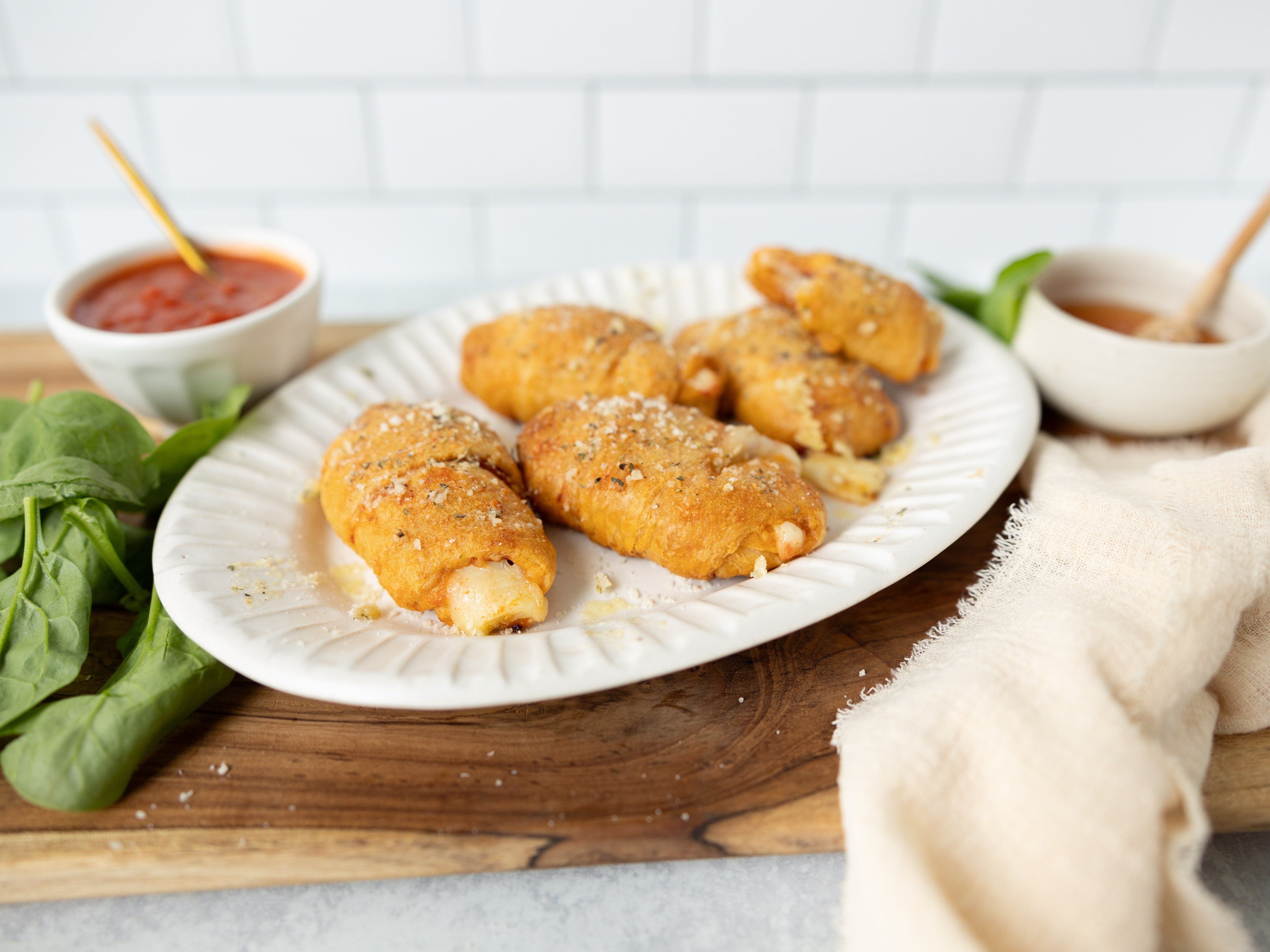 After the homework gets finished and the chores are checked off, everyone runs to the kitchen for School Night Pizza Rolls! Mom loves them because they're a breeze to make (even while wrangling all the things) and the kids love 'em because they're crispy, gooey, and loaded with all their favorite pizza flavors. A blast to eat and perfect for students of all ages (even, ahem, the older alumni), School Night Pizza Rolls are the real star students of dinnertime!