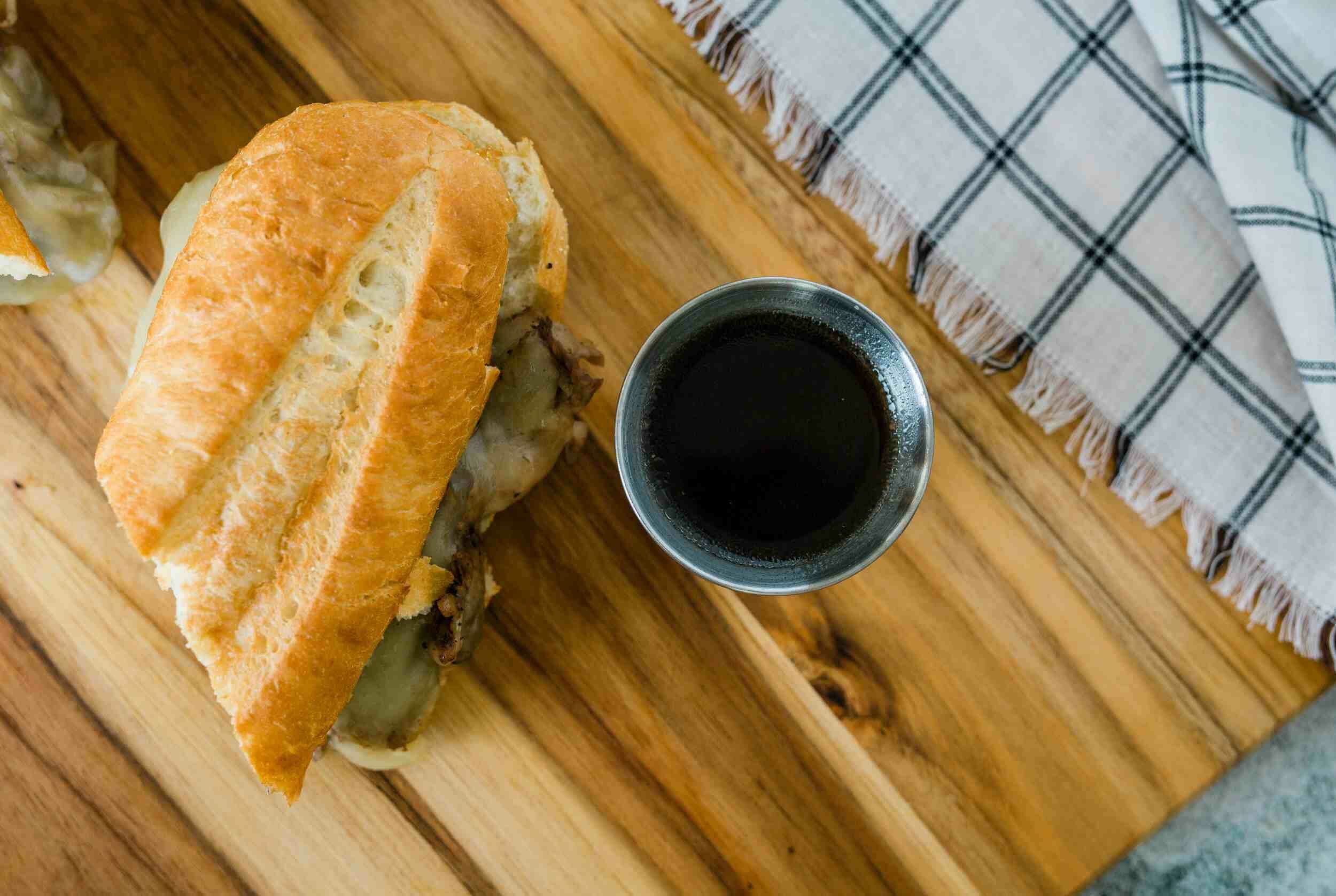 Step 15 -Serve the sandwiches with the jus dipping sauce on the side.