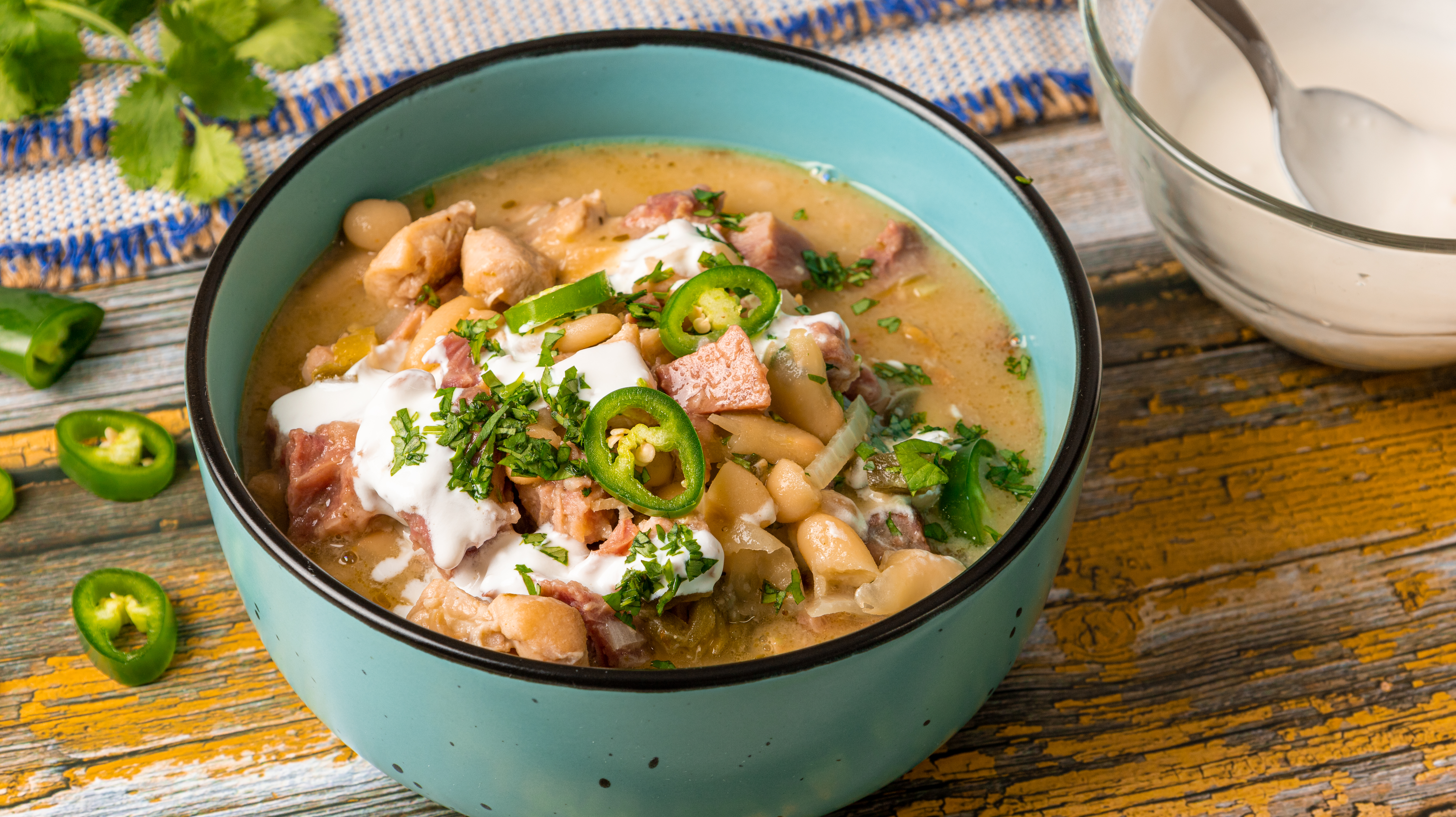 Southwestern Chili gets to the heart of what a great chili should be: hearty, meaty, spicy, and intensely flavorful. The broth is packed with herbs and zest, and the chicken thighs are succulent and tender. Oh, and let's not forget all the hot-off-the-bone ham stirred into this fragrant, filling stew. Yes indeed, Southwestern Chili is a trail-blazingly delicious meal!
