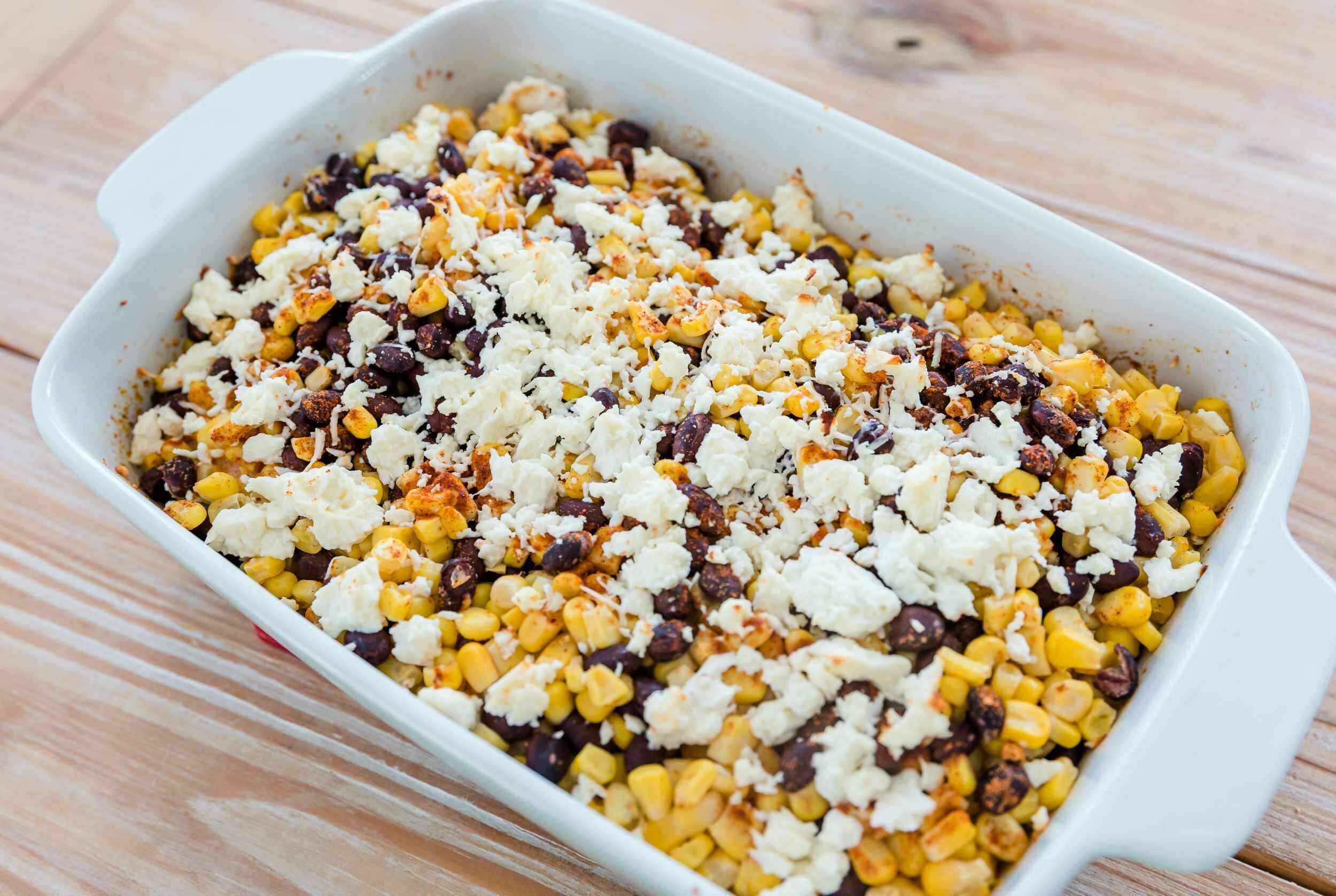 Street Corn Chicken Bake is inspired by Mexican street food, and it’s bursting with flavor! Baked with just a few simple ingredients and ready in just 35 minutes, this recipe may just become one of your new go-to's. The chicken in this recipe is seasoned to perfection with cumin and chili powder, and combined with sweet corn, hearty black beans, and sharp cheese for a well-rounded, delicious meal. Street Corn Chicken Bake is savory, satisfying, and super simple to make!