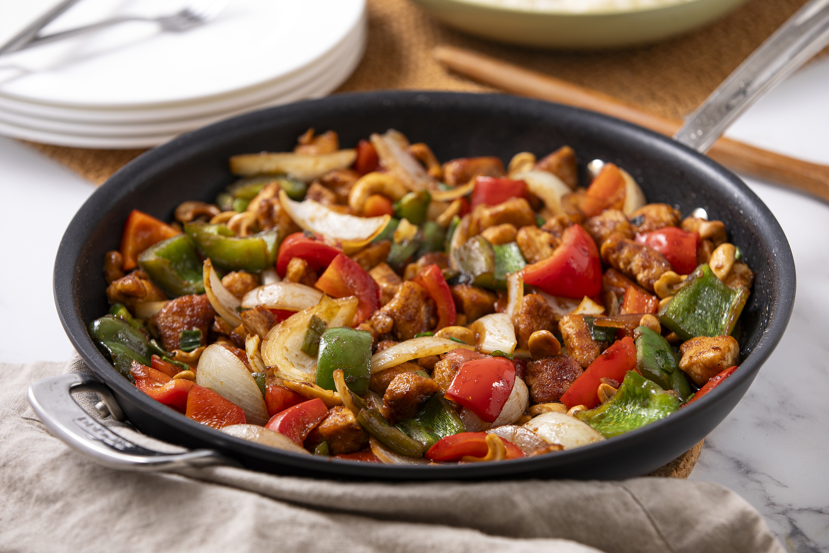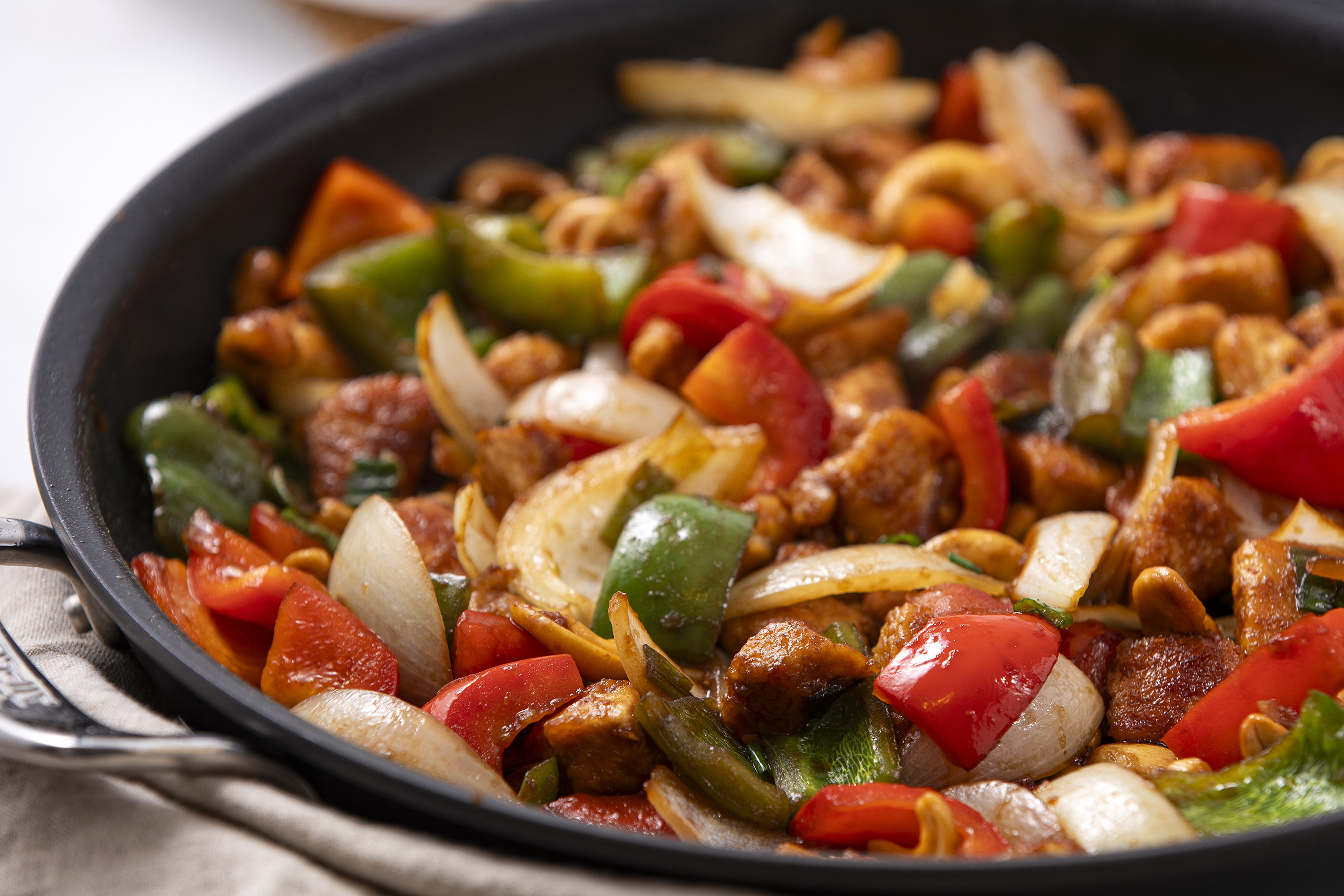 Why would you call delivery when you can get Takeout Thai Cashew Chicken straight to your plate? It's guaranteed to be hot and fresh when it comes from your own kitchen! Juicy chicken, tender vegetables, and crunchy cashews are stir-fried together and then smothered in a sweet, savory, and sticky sauce that just makes your taste buds happy, pure and simple! Takeout Thai Cashew Chicken is the best takeout experience without actually calling for takeout!