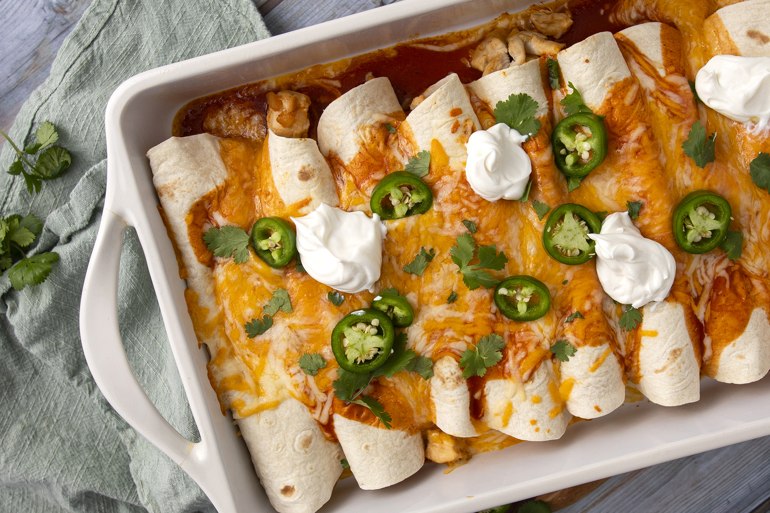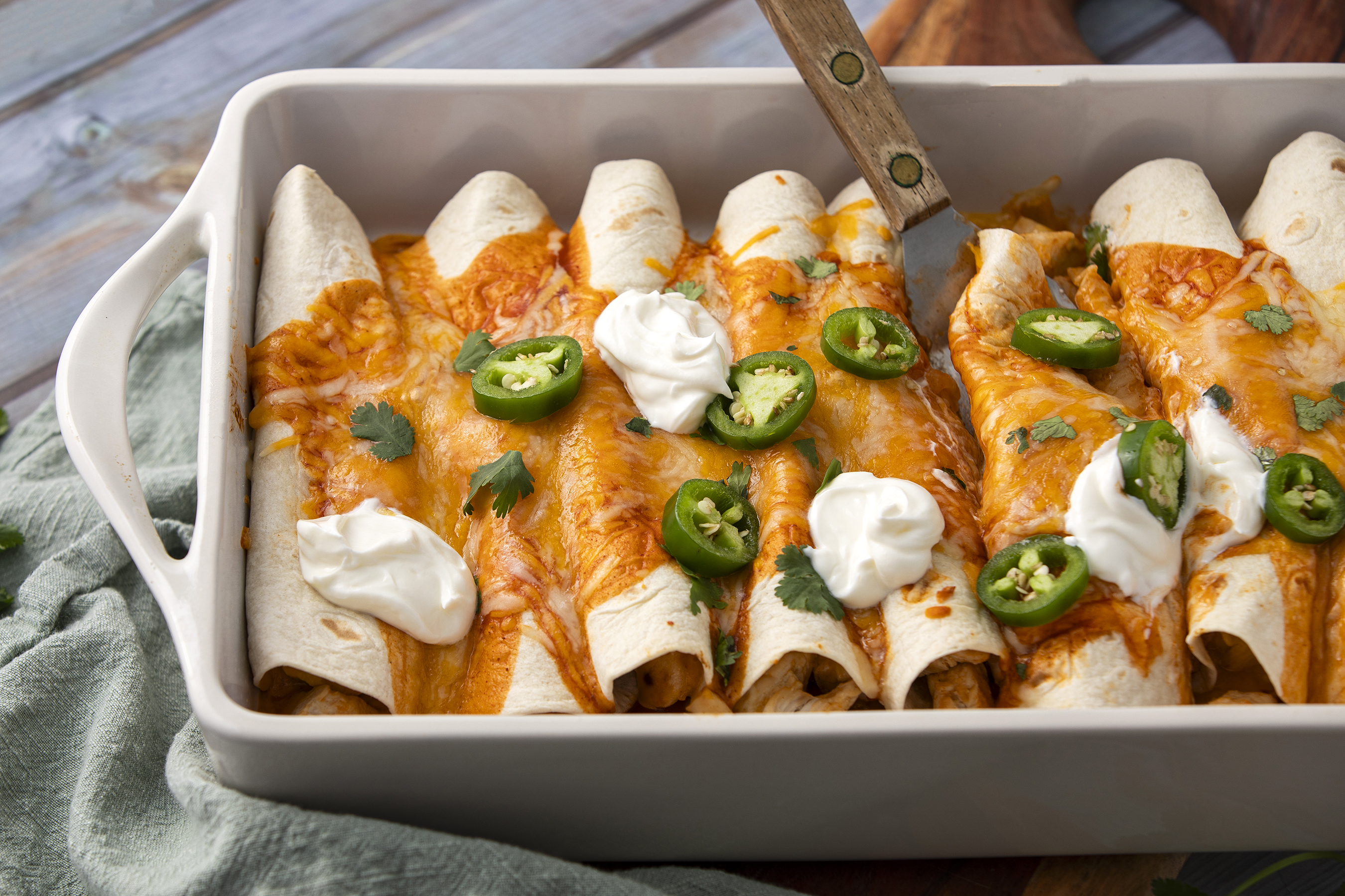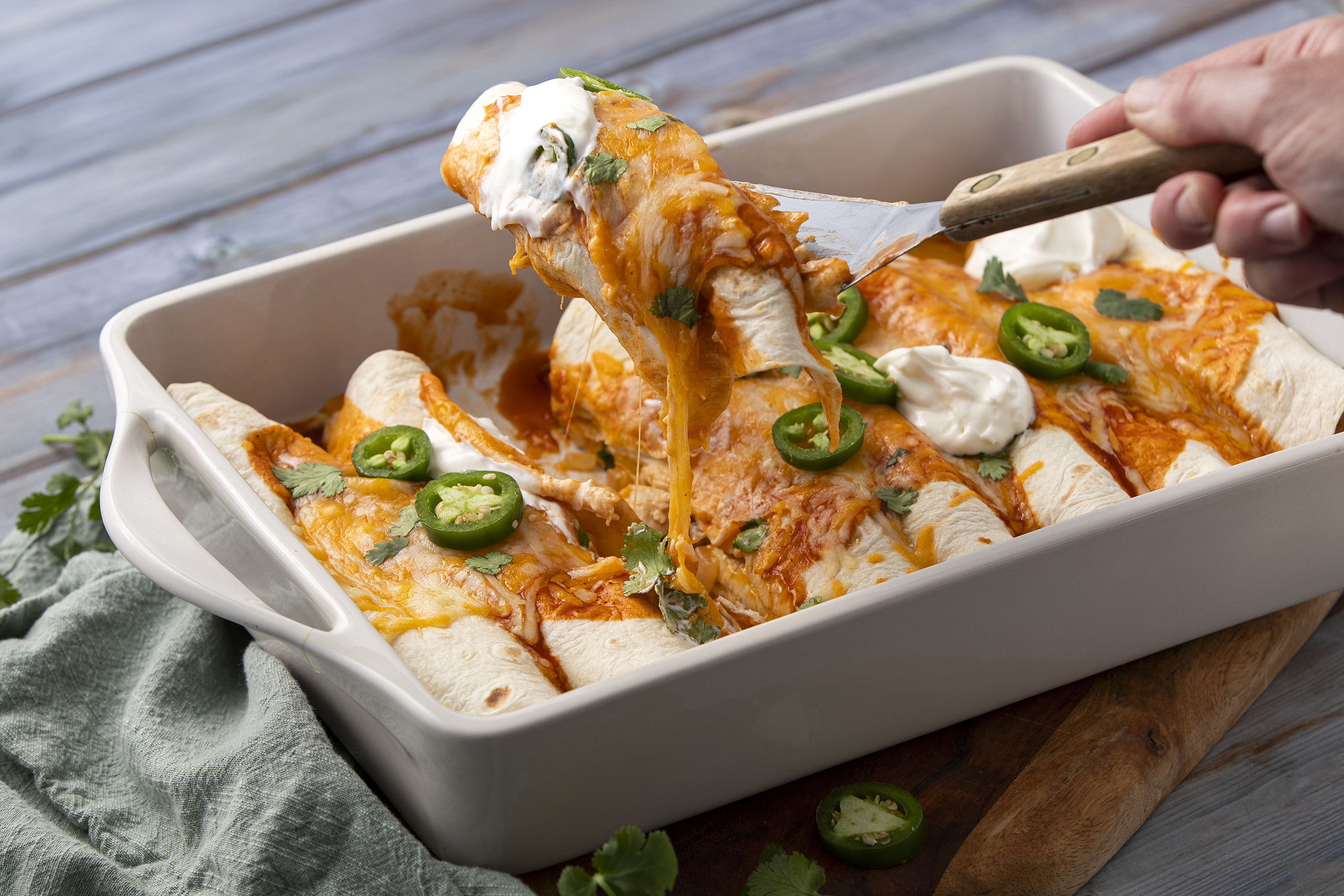 Is it ironic to name a dish after a man whose diet famously would prevent him from eating it? Maybe. But much like their namesake, Tom Brady's Chicken Enchiladas are a winner. Plenty of enchilada sauce ensures there's spice, chicken brings the protein and savory goodness, jalapeños bring even more heat, and cheese brings... well, everyone likes cheese. Get yourself a Super Bowl® ring of flavor with Tom Brady's Chicken Enchiladas!