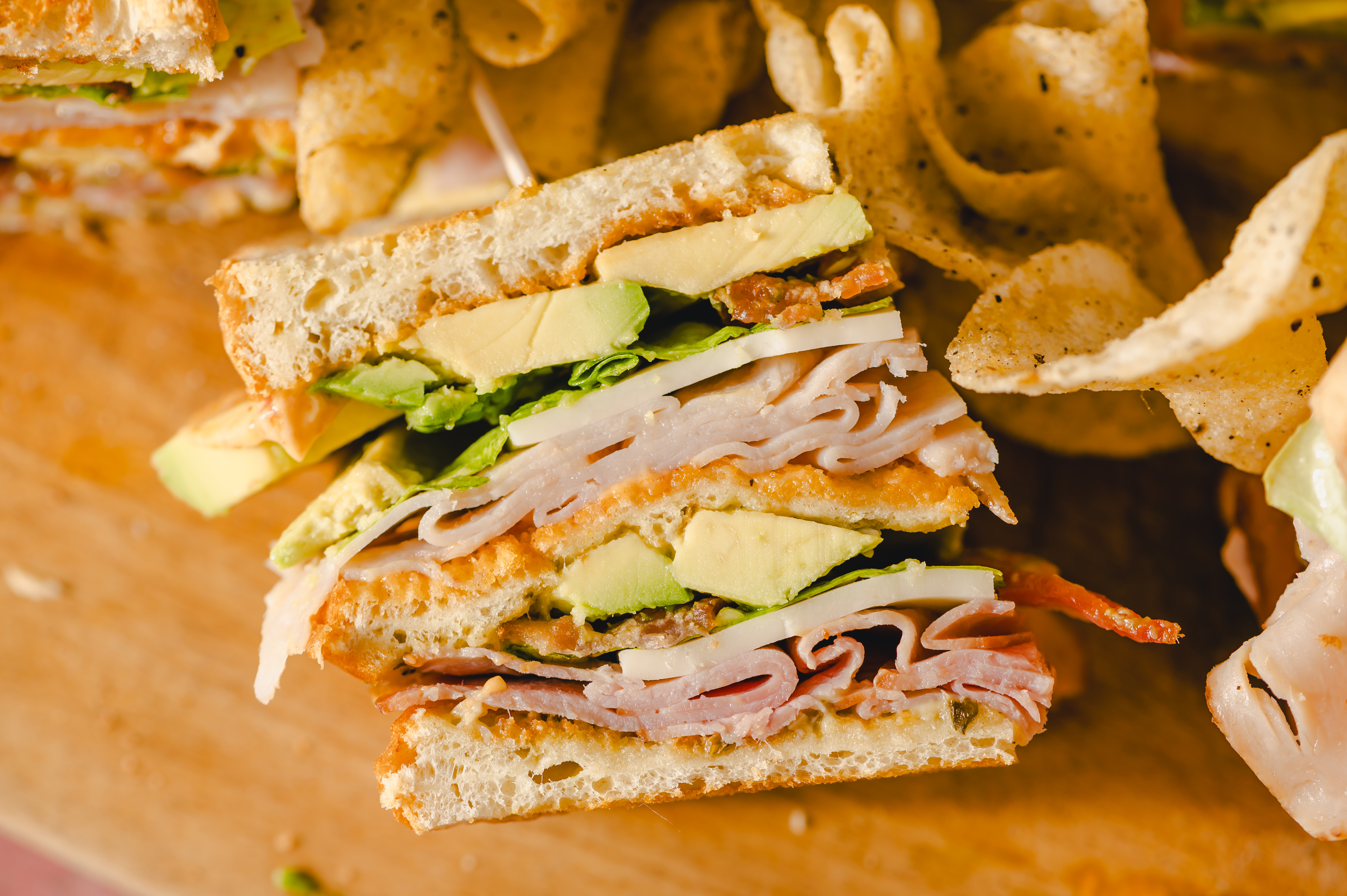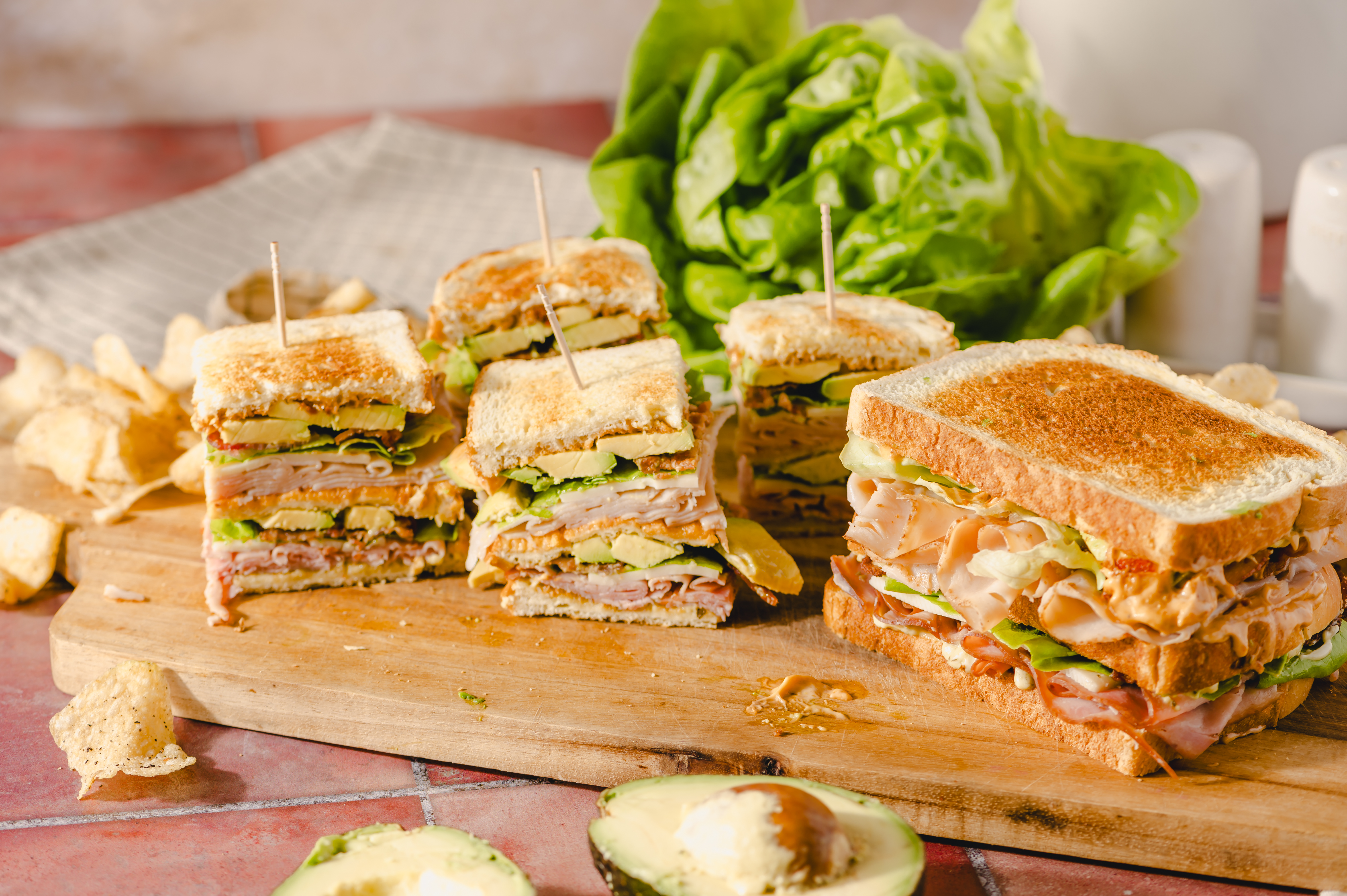 This is the kind of club everyone wants to be a part of! The Ultimate Club Sandwich is a layered masterclass in great taste and first-class satisfaction. Even the mayonnaise gets in on the next-level action, infused with two different kinds of pesto! Succulent ham and turkey, crispy bacon, fresh and creamy avocado, and a slice of cheese all sandwiched between crunchy toast slices? Well, that doesn't just make a great club sandwich... it's what makes the Ultimate Club Sandwich!